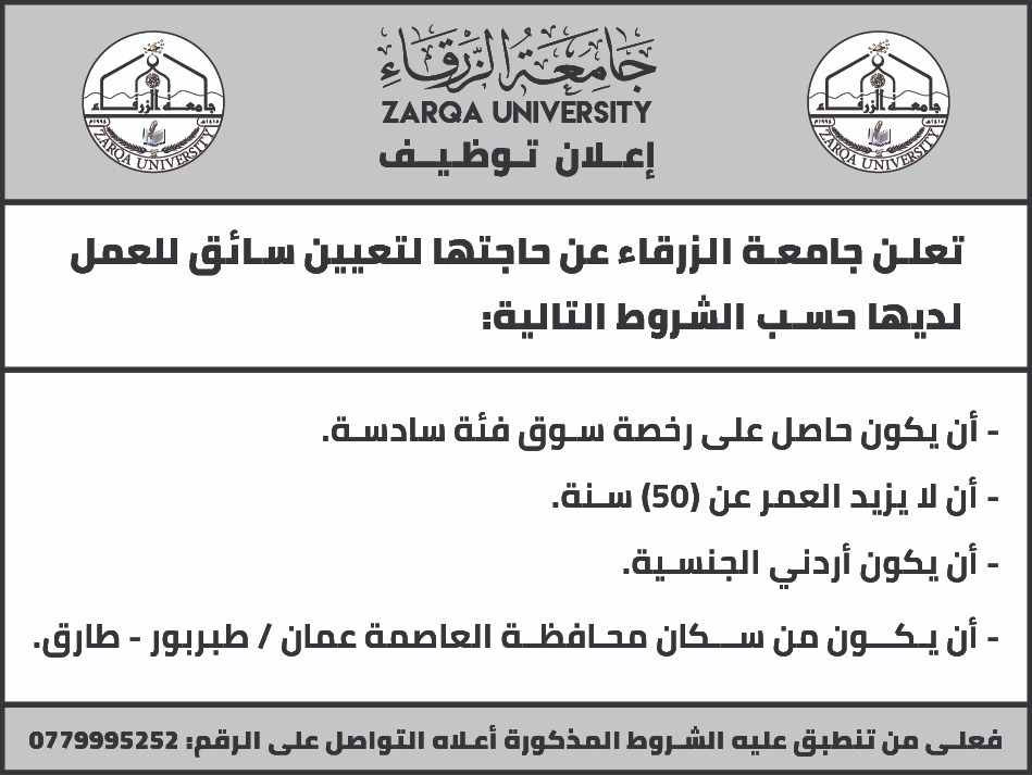 جامعة الزرقاء تعلن عن حاجتها لتعيين سائق للعمل لديها