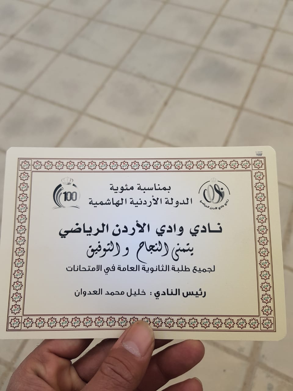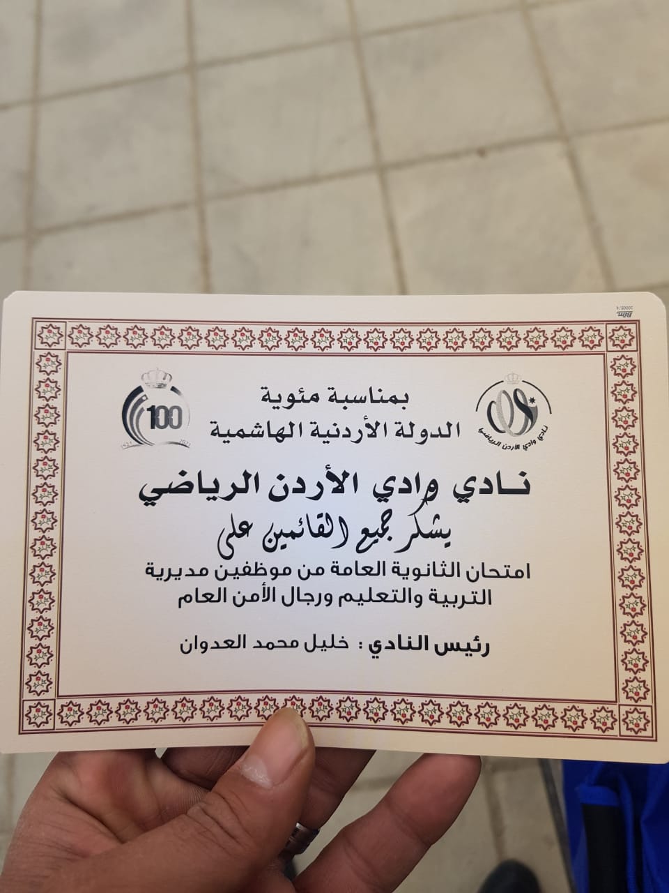 حيث تم توزيع بطاقات شكر على جميع الطلبة والقائمين على الامتحان ومرتبات مديرية الامن العام متمنيين التوفيق للجميع