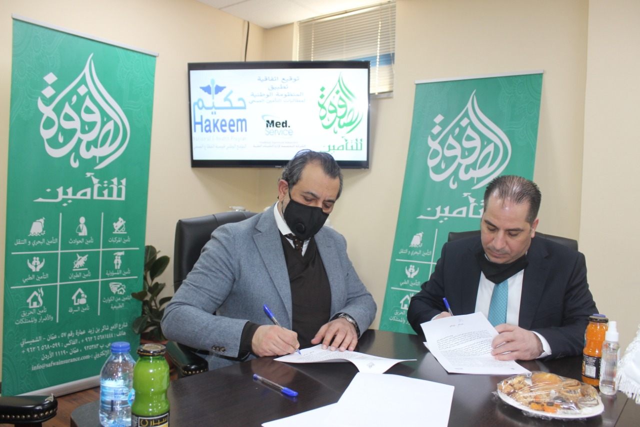 وقعت شركة الصفوة للتأمين اتفاقية تعاون مع شركة الحوسبة الصحية الدولية ، لغايات ربط الشركة بالمنظومة الوطنية لمطالبات التأمين الصحي "Hakeem Claim” وهي المنظومة الموحدة التي ستتيح المجال لتخزين البيانات الطبية المتعلقة بالمرضى بصورة الكترونية وربط كامل المطالبات التأمينية الطبية .