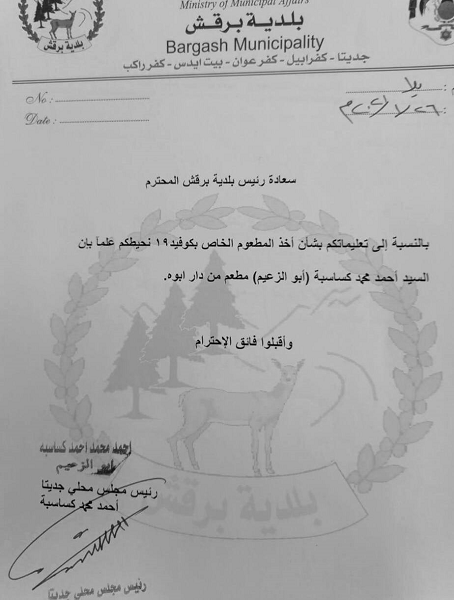 ردّ رئيس مجلس محلي جديتا , أحمد الكساسبة , السبت , على كتاب متداول , حول تلقيه اللقاح المضاد لفيروس كورونا المستجد .