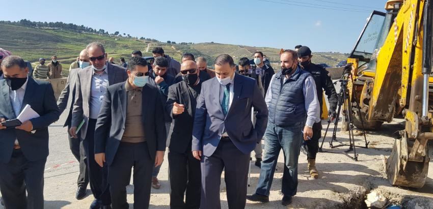 واطلع الوزير ومرافقيه على الإجراءات المنفذة وعمليات نقل الخط خلال أيام معدودة الى الجانب الاخر من الطريق الرئيسي من قبل احد المقاولين العاملين مع سلطة المياه والمسافة (٣٠٠) متر لضمان عدم توقف الخط وتوقف الضخ عن مناطق محافظة جرش مستقبلا وضمان انتظام ادوار المياه وكذلك اتاحة الفرصة امام كوادر الاشغال العامة لاجراء الصيانة اللازمة للطريق ومنطقة الانهيار على الجانب الاخر من الطريق مشددا على ضرورة التأكد من سلامة جميع الخطوط الناقلة والرئيسية في مواجهة كافة الظروف الجوية واستمرار الضخ للمناطق في جميع المناطق .