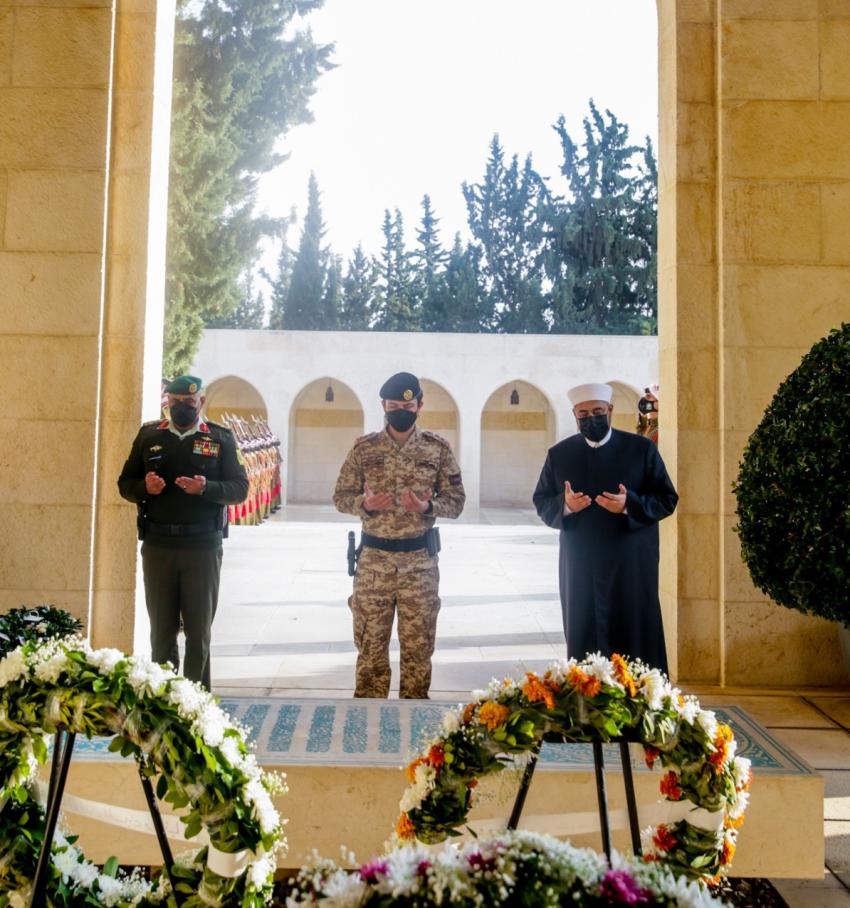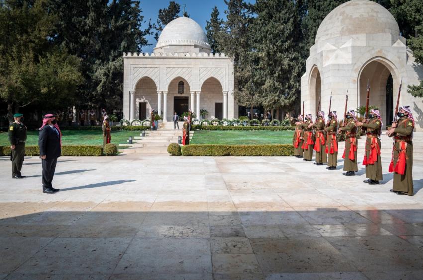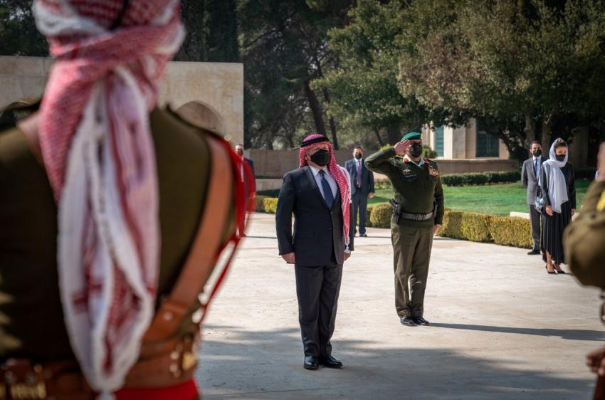 الملك والملكة وولي العهد يزورون ضريح الملك الراحل الحسين