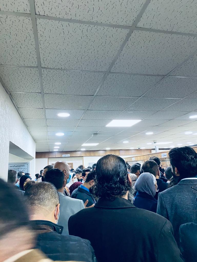 حالة من الفوضى عمت قاعات نقابة المحامين التي شهدت زحفًا كبيرُا من أعضاء الهيية العامة الذين توافدوا فرادى وجماعات من أجل تسديد الرسوم السنوية.