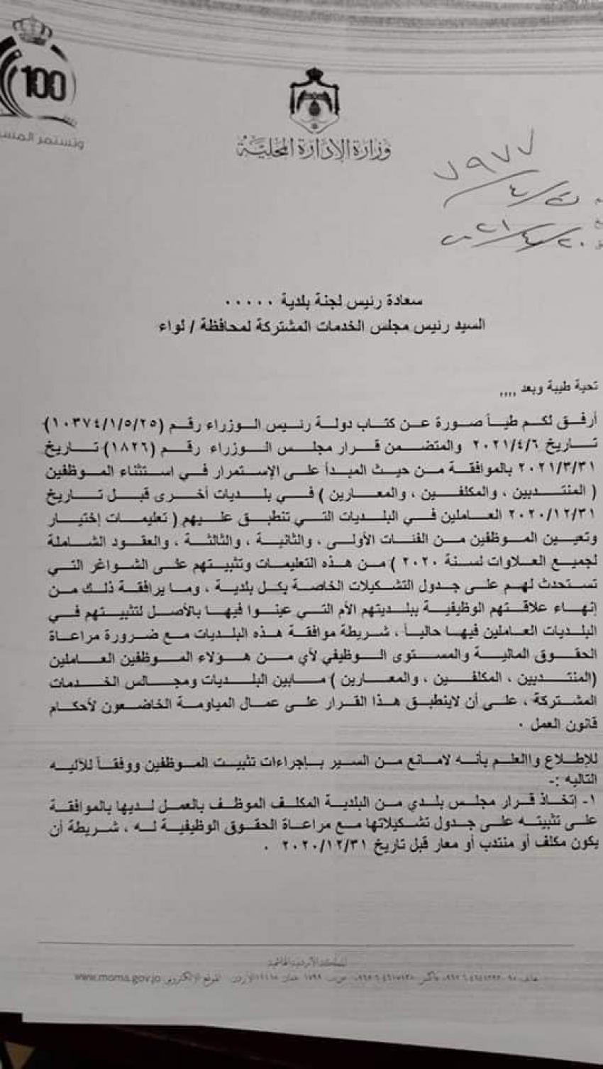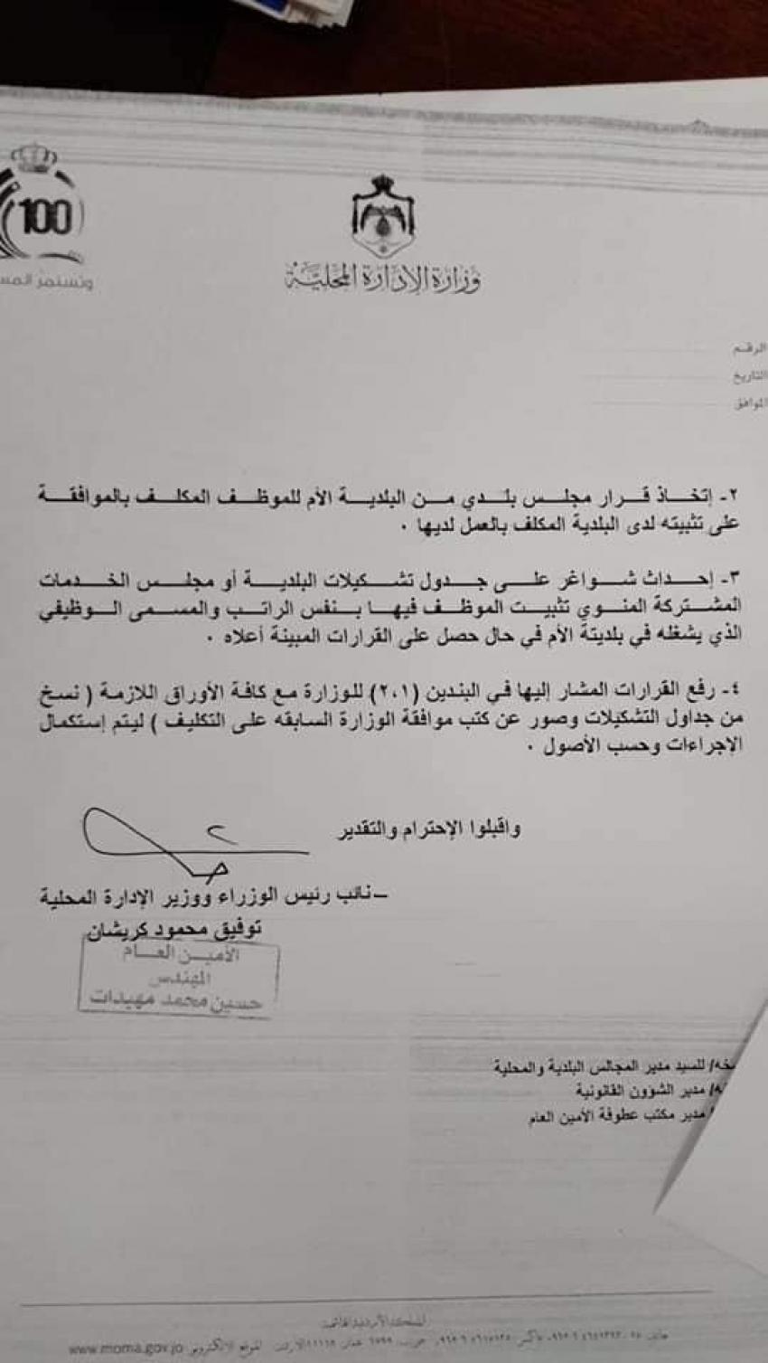 "البلديات" تكشف عن شروط تثبيت الموظفين المعارين والمنتدبين والمكلفين (وثائق)