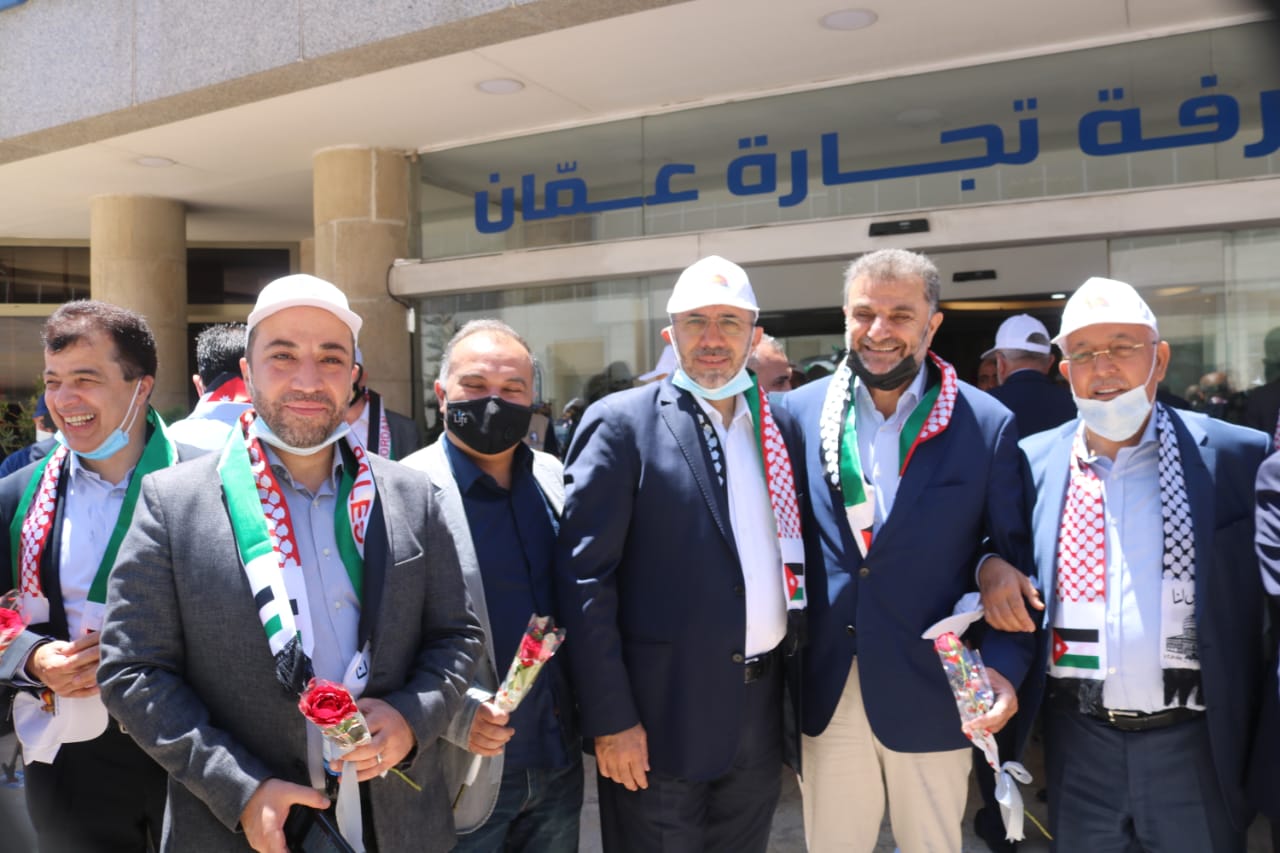 خليل الحاج توفيق رئيس غرفة تجارة عمان ألقى كلمة في الحشد الكبير الذي بدأها بقراءة الفاتحة على ارواح الشهداء في فلسطين وأرواح شهداء الجيش العربي الذي اسقوا بدمائهم أرض فلسطين المباركة، مؤكدًا بأن هذه الوقفة احتفالية وكرنفالية تجسد روح التآخي والتضامن بين الشعبين الشقيقين الأردني والفلسطيني ومساندة غرفة تجارة عمان للأهل في فلسطين كل فلسطين، مشيدًا بروح التضامن والأخوة ومباركًا النصر العظيم الذي سيفتج أبوابًا أخرى للنصر بإذن الله.