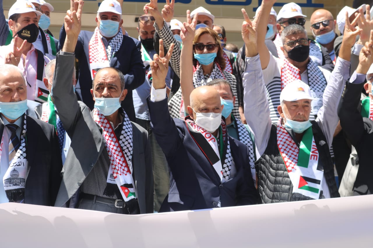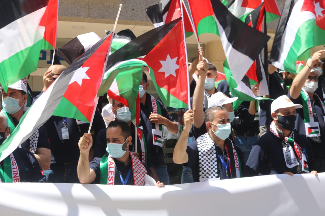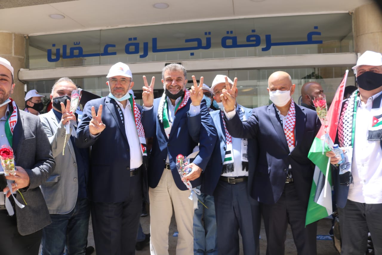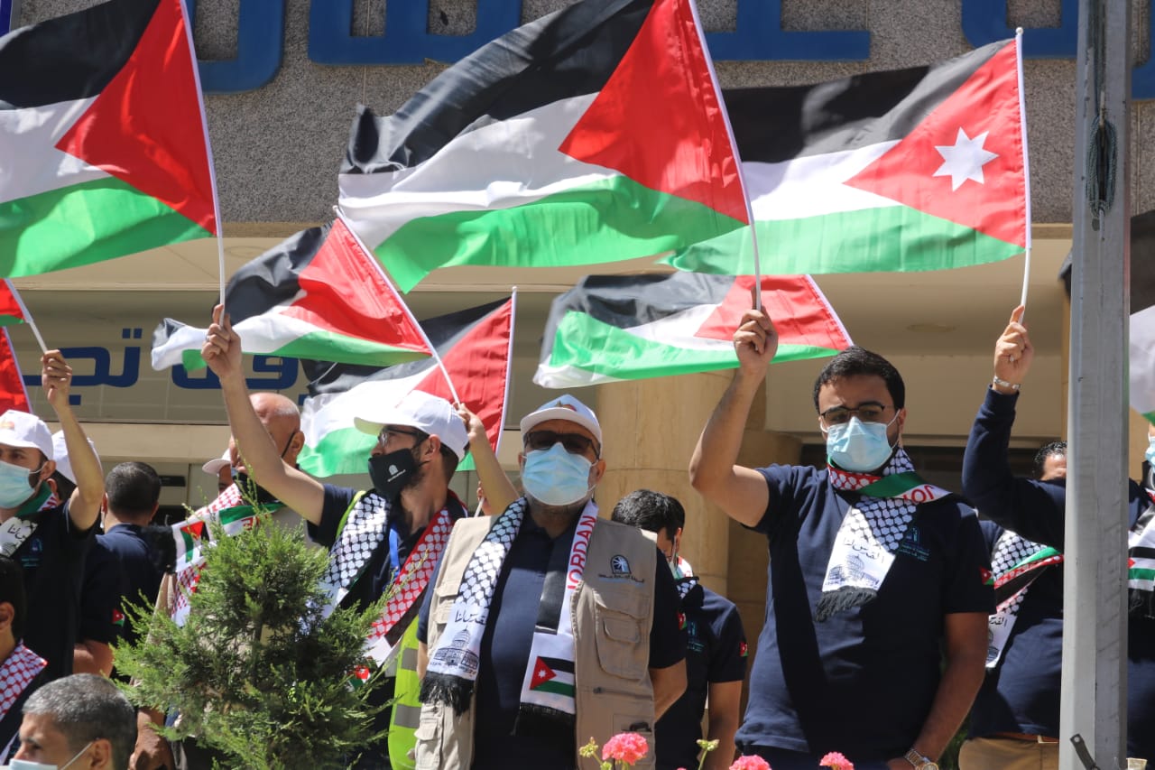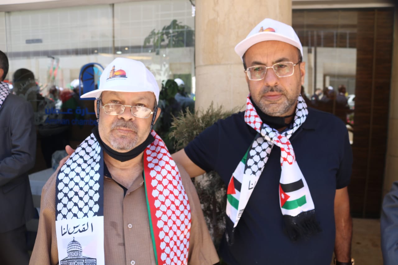 وكانت إدارة الغرفة قد قامت برصف أرضية ساحة الوقفة بالعلم الصهيوني الذي داسته الأقدام بخطوة لاقت تأييد وإعجاب الحضور الذين هتفوا للأردن وفلسطين على وقع الأغاني الوطنية الحماسية .