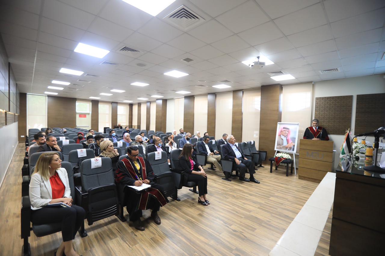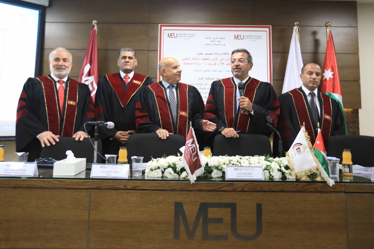 وأشرف على الرسالة الاستاذ الدكتور عزت محمد حجاب، وتشكلت لجنة المناقشة من الدكتور هاني البدري، عضوا من داخل الجامعة، رئيسا، والدكتور أشرف المناصير عضوا من داخل الجامعة، والدكتور سطام المطارنة مراقبا للجلسة، والاستاذ الدكتور موسى مفضي شتيوي عضوا من خارج الجامعة – الجامعة الأردنية.