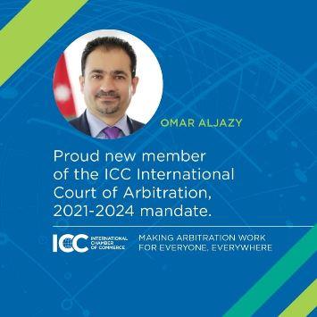 انتخب الدكتور عمر الجازي عضوا لولاية جديدة، في محكمة التحكيم الدولية لدى غرفة التجارة الدولية (ICC) في باريس .