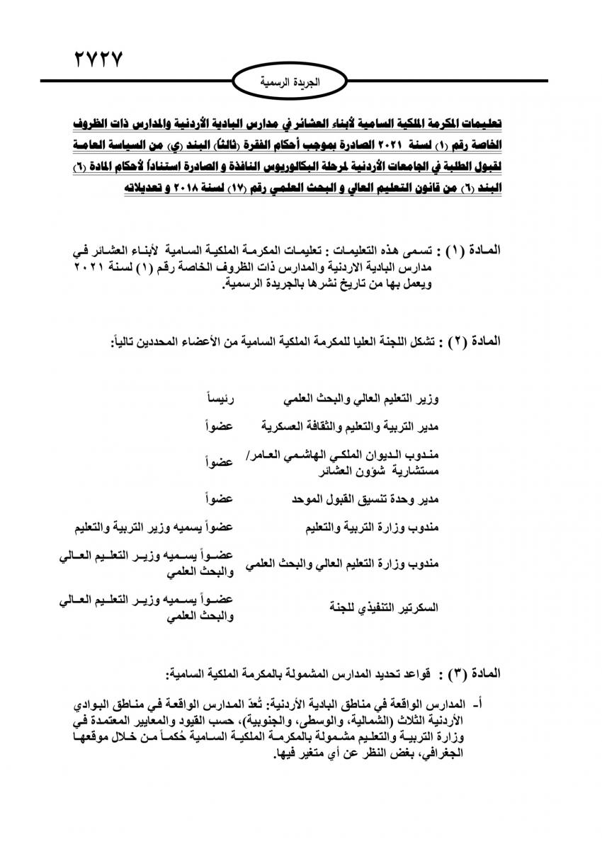 تعليمات المكرمة الملكية لأبناء العشائر في مدارس البادية