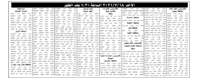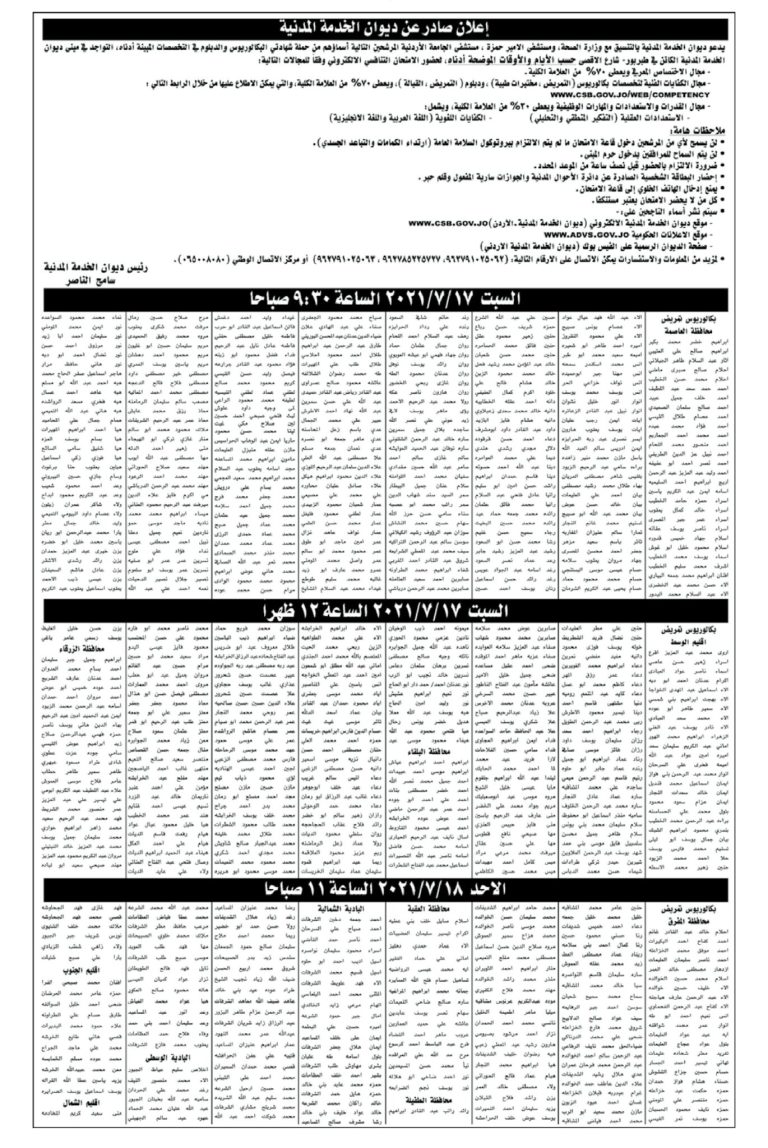 ودعت المرشحين من حملة شهادتي البكالوريوس والدبلوم التالية أسماؤهم، التواجد في مبنى الديوان الكائن في طبربور – شارع الأقصى.