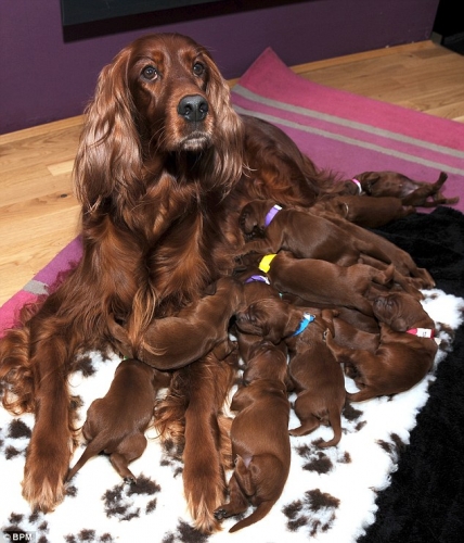 اخبار البلد_ فى حادث فريد من نوعه انجبت كلبة ايرلندية 15 جروا ما بين ذكور و اناث خلال عملية ولادة استمرت 8 ساعات من عملية الولادة.