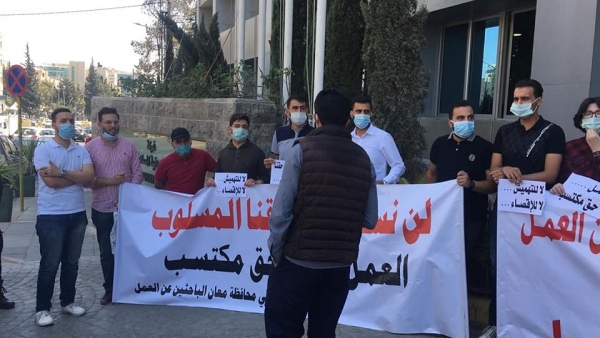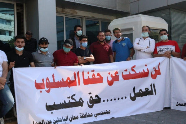 وعلى اثر رفض مقابلتهم ، نفذ ابناء معان وقفة احتجاجية منددين باستثنائهم من العمل او التدريب ومخالفة الشركة الاتفاقية التي وقعتها مع نقابة المهندسين والتي طالبت الشركة بتشغيل (500) مهندس من محافظات الجنوب .