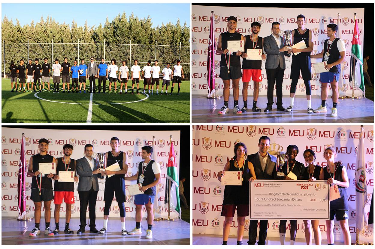 اختتمت مساء يوم السبت، فعاليات بطولة مئوية المملكة لكرة القدم (خماسي)، وكرة السلة (3X3) فوق المُسطّح الأخضر في جامعة الشرق الأوسط، بعد مشاركة " 38 " فريقاً لكرة القدم، و"30 " من كرة السلة، من مختلف محافظات المملكة.
