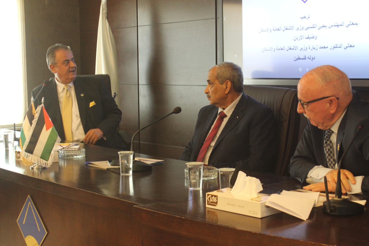 وأشاد الوزيران، بحضور أمين عام وزارة الأشغال بالوكالة، ومدير دائرة العطاءات الحكومية، ومدير عام مؤسسة الإسكان والتطوير الحضري، وأمين سر مجلس البناء الوطني، إلى جانب معنيين في الوزارة، والوفد المرافق لوزير الاشغال والاسكان الفلسطيني، بحسن الاستقبال واهمية اللقاء في مطلع حديثهما.