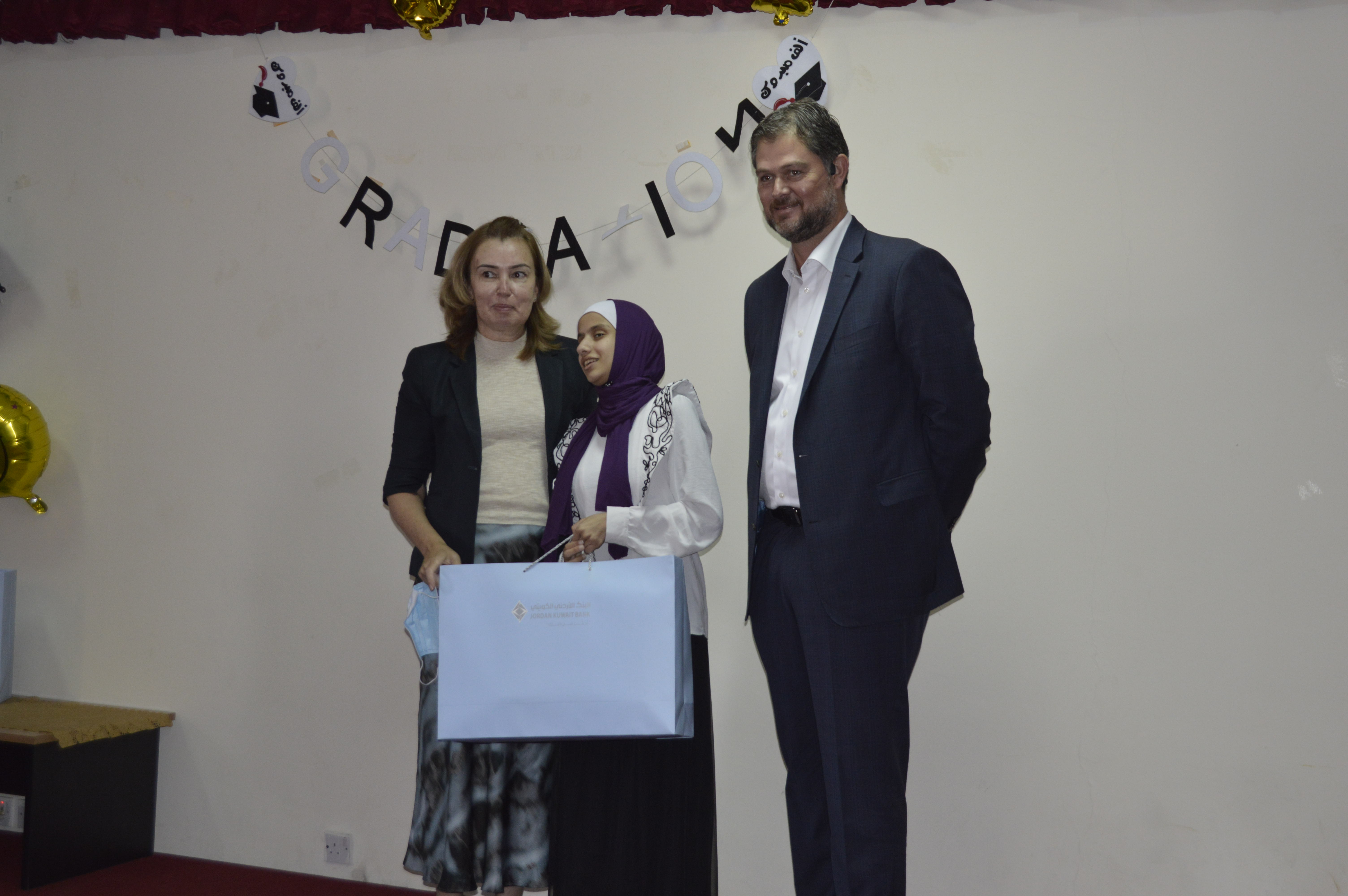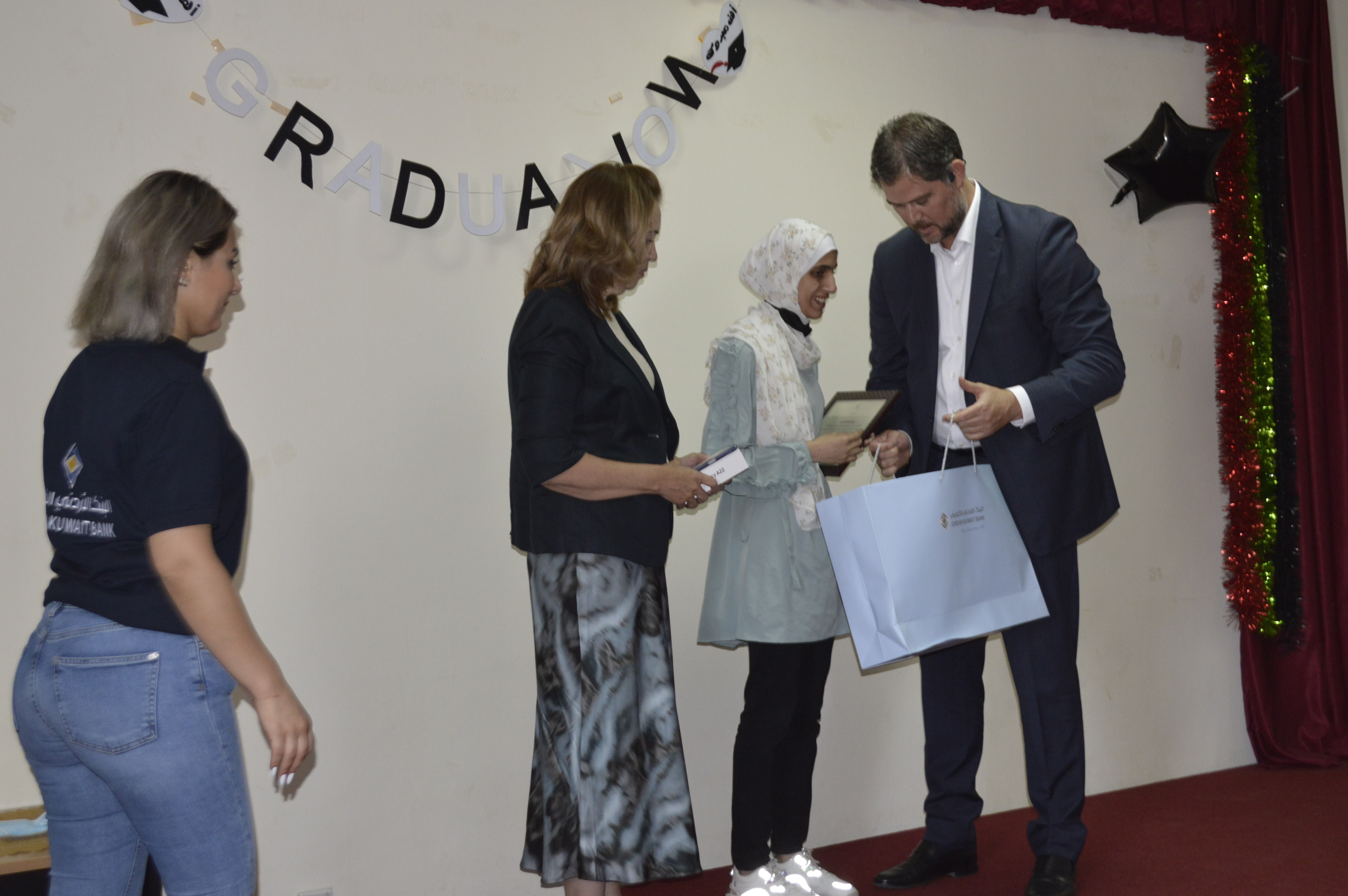 تجسيداً وترجمة للمسؤولية الاجتماعية التي ينهض بها البنك الأردني الكويتي، وكجزء من مهامه وواجباته في خدمة الوطن والمواطن، قام السيد هيثم البطيخي المدير العام التنفيذي للبنك الأردني الكويتي وفريق من البنك يضم السيدة دانا جرادات رئيس إدارة الإستراتيجية والتسويق وطاقم من إدارة التسويق بتكريم نشميتين من نشميات الوطن، وهما الطالبتان مايا جدعان وفاطمة عيسى لتفوقهما في الثانوية العامة وهما من فاقدي البصر، وتم ذلك ضمن حفل أقامته جمعية الضياء لرعاية المكفوفين بالتنسيق مع البنك، حضره لفيف من طلبة الجمعية وأولياء أمورهم وتواجد عدد من الصحفيين والإعلاميين والمهتمين.