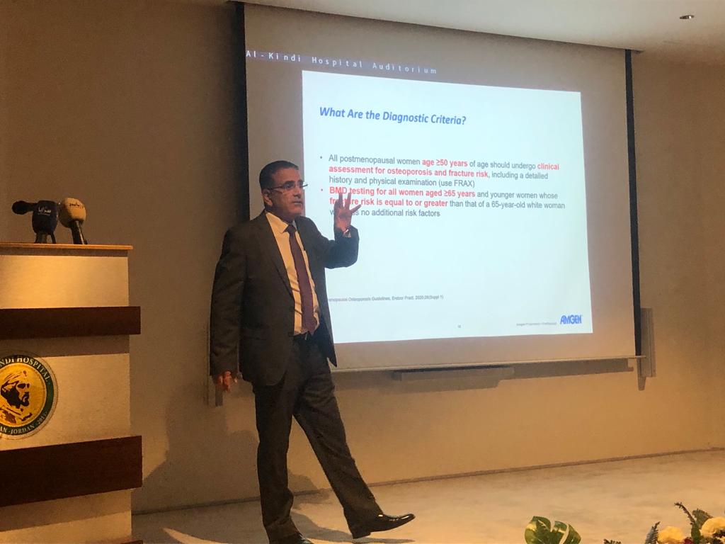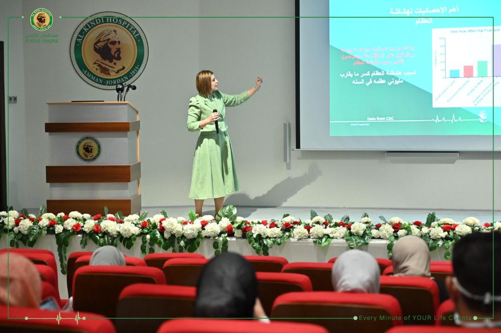 وتحدث معالي الدكتور حياصات حول اهمية عقد مثل هذه الفعاليات لما لها من دور مهم وأثر كبير في زيادة الوعي لدى النساء والرجال للوقاية من هذا المرض الصامت والذي يؤدي بدوره الى الاصابة بالكسور وكذلك المساهمة المهمة مع المجتمع للحد من هذا المرض ، واستعرض كذلك نبذة موجزة عن مستشفى الكندي وامكانياته والذي يعتبر من المستشفيات الرائدة في المنطقة ودوره الهام في السياحة العلاجية .