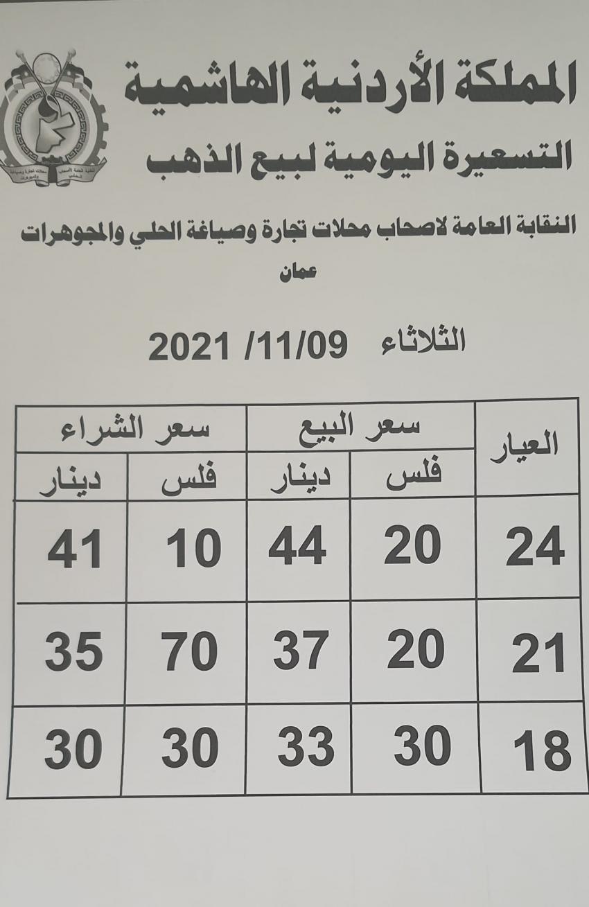 ووفق ما أظهرت التسعيرة اليومية الصادرة عن النقابة العامة لأصحاب محال تجارة وصياغة الحلي والمجوهرات، فقد ارتفع سعر بيع غرام الذهب من عيار 21 قيراطا الأكثر طلبا بين المواطنين 10 قروش ليصبح 37.20 دينارا، والشراء بقيمة 35.70 دينارا.