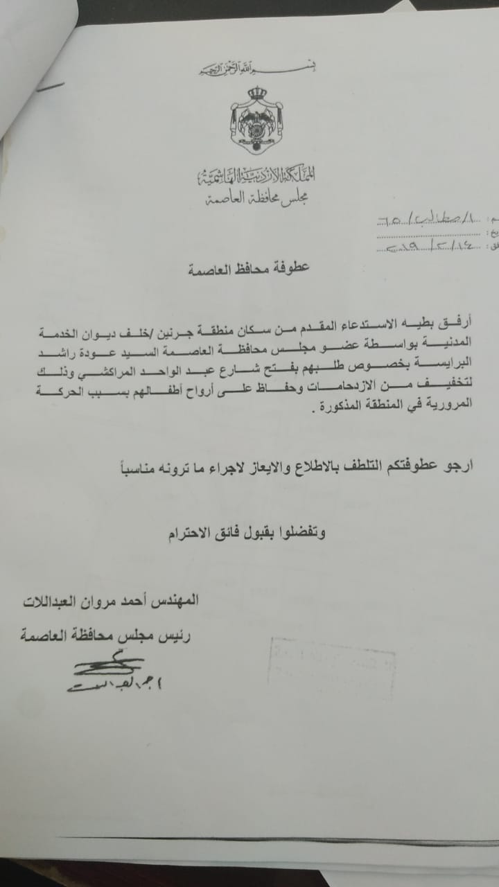 وقال الأهالي إن الشارع المغلق يصل منطقة حيوية تقع فيها مدارس وأسواق..إلخ، لذلك توجهوا لمحافظ العاصمة في عام 2014 حمالين معهم مطلبهم الأوحد، وقام المحافظ بمخاطبة أمانة عمان لفتح الشارع.