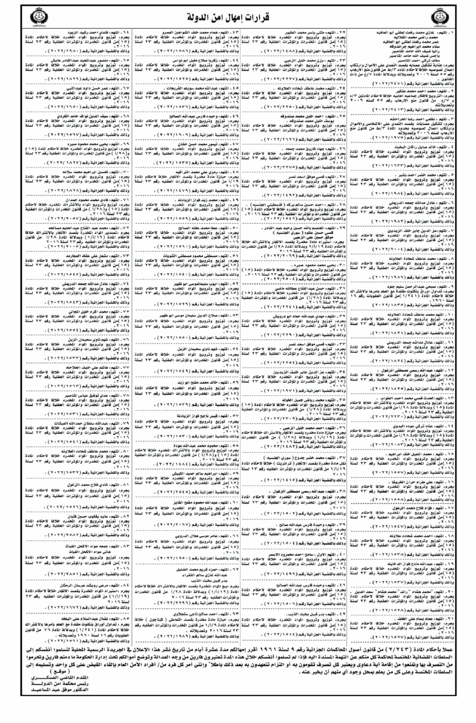 أخبار البلد ــ أمهلت محكمة أمن الدَّولة متهمين، 10 أيَّام لتسليم أنفسهم للسلطات المختصة لمحاكمتهم على التهم المسندة إليهم، وإلا سيتم اعتبارهم فارين من وجه العدالة.