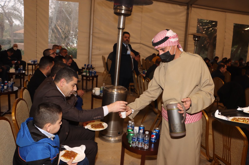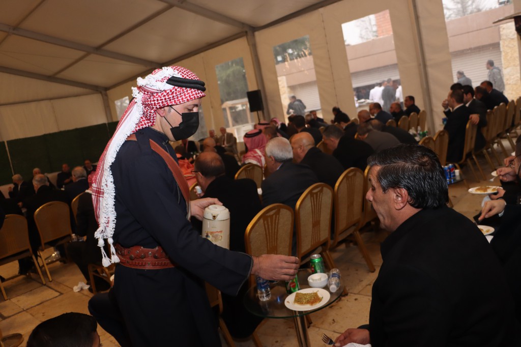 عشيرة المحادين اختارت معالي المهندس عاطف الطراونة رئيس مجلس النواب السابق للحديث نيابةً عنها فيما اختارت عشيرة النوايسة معالي سعد هايل السرور المستشار الاسبق لجلالة الملك عبدالله الثاني ابن الحسين لشؤون العشائر الذي لبى طلب جاهة المحادين الذين تقدموا لطلب كريمة رجل الاعمال خلف النوايسة المهذبة صاحبة الصون والعفاف الدكتورة آرام النوايسة ليد المهذب والاستاذ المحامي ثامر عاطف المحادين، حيث قرأت الجاهة الكريمة الفاتحة على نية التوفيق متمنيين للاسرة الاردنية الكركرية الجديدة فرحاً وسعادة وتفاؤل وحب.