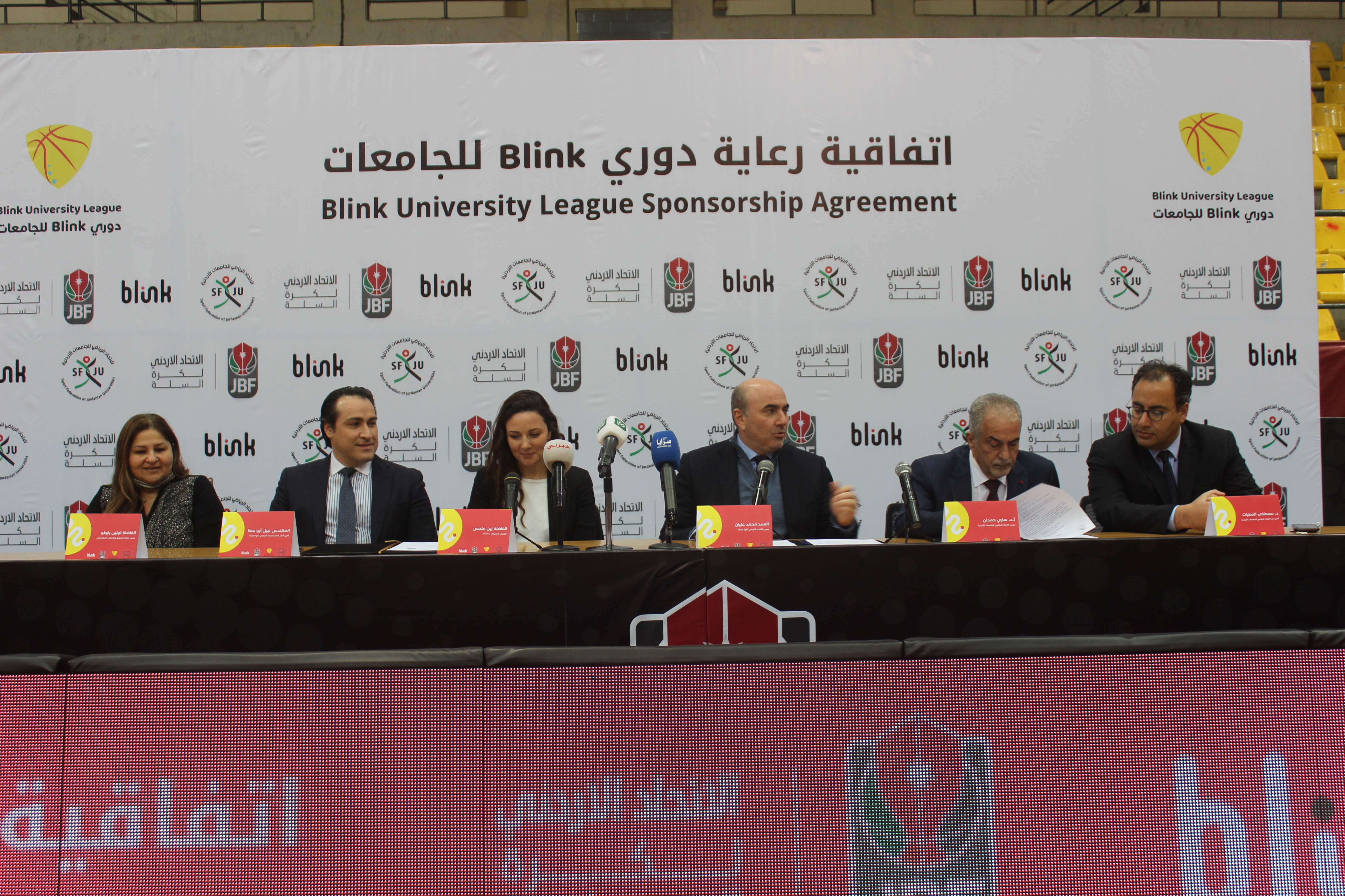 وخلال المؤتمر الصحفي وقعت الرئيس التنفيذي لـ Blink زين ملحس، ورئيس الاتحاد الأردني لكرة السلة، محمد عليان، اتفاقية يصبح بموجبها Blink الداعم لدوري الجامعات، "دوري Blink للجامعات".
