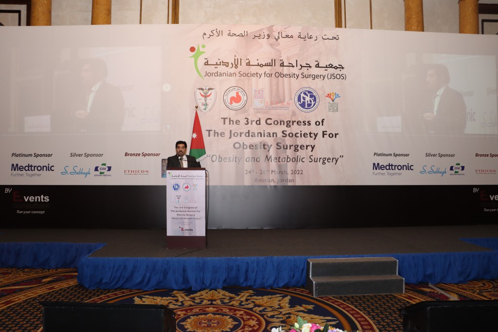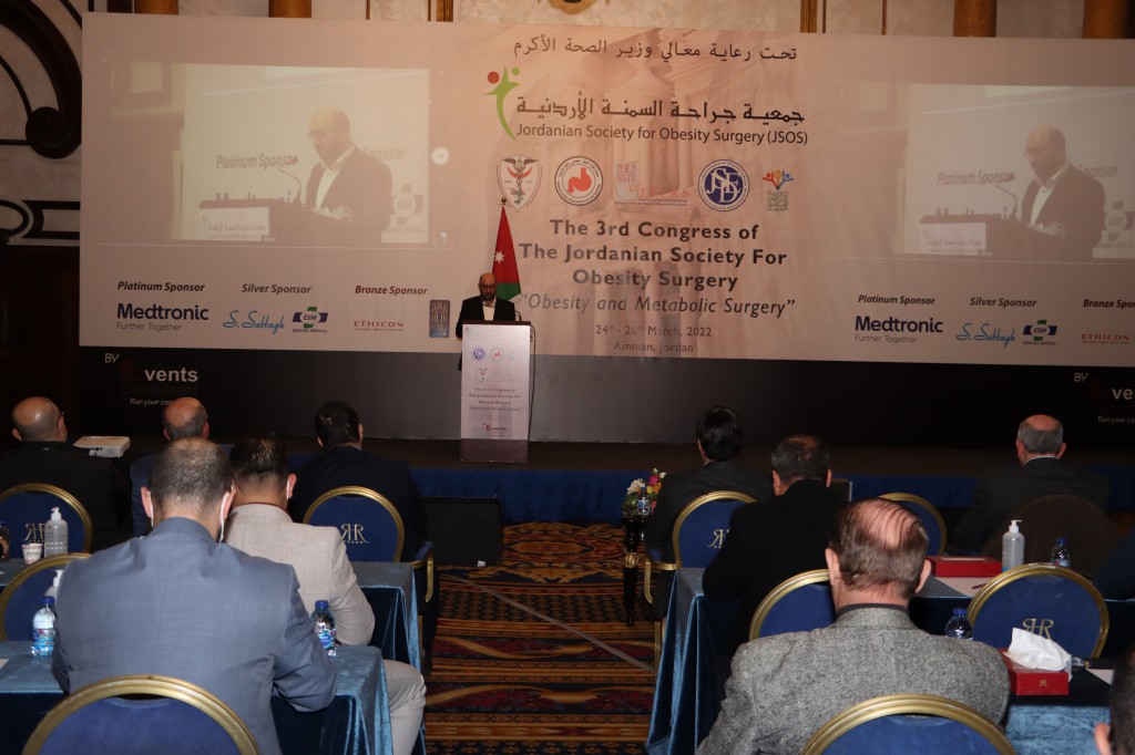 عقدت جمعية جراحة السمنة الأردنية يوم الخميس الموافق 24/3/2022 وبرعاية وزير الصحة الدكتور فراس الهواري مؤتمراً لجراحة السمنة الثالث بعنوان "مرض البدانة والسمنة ومضاعفاتهما وطرق العلاج الحديثة " وبمشاركة أطباء عالميين،على مدى ثلاثة أيام في فندق الرويال.