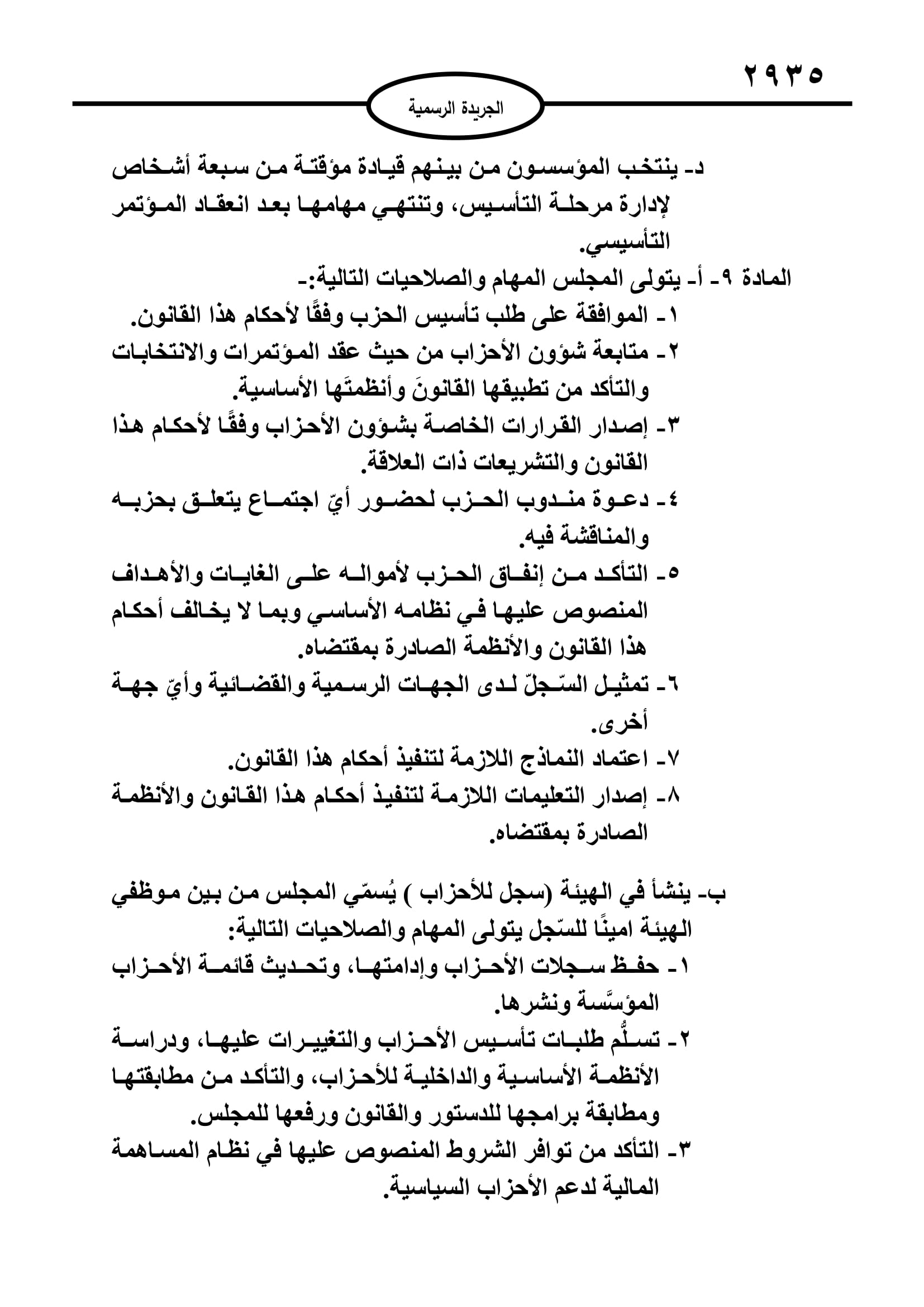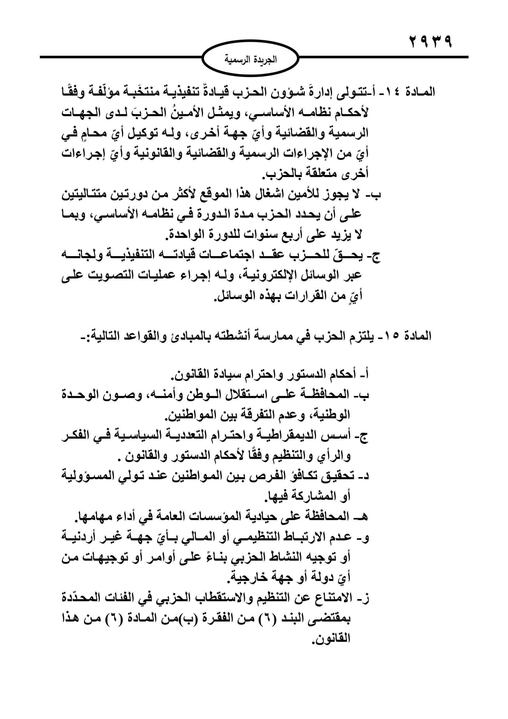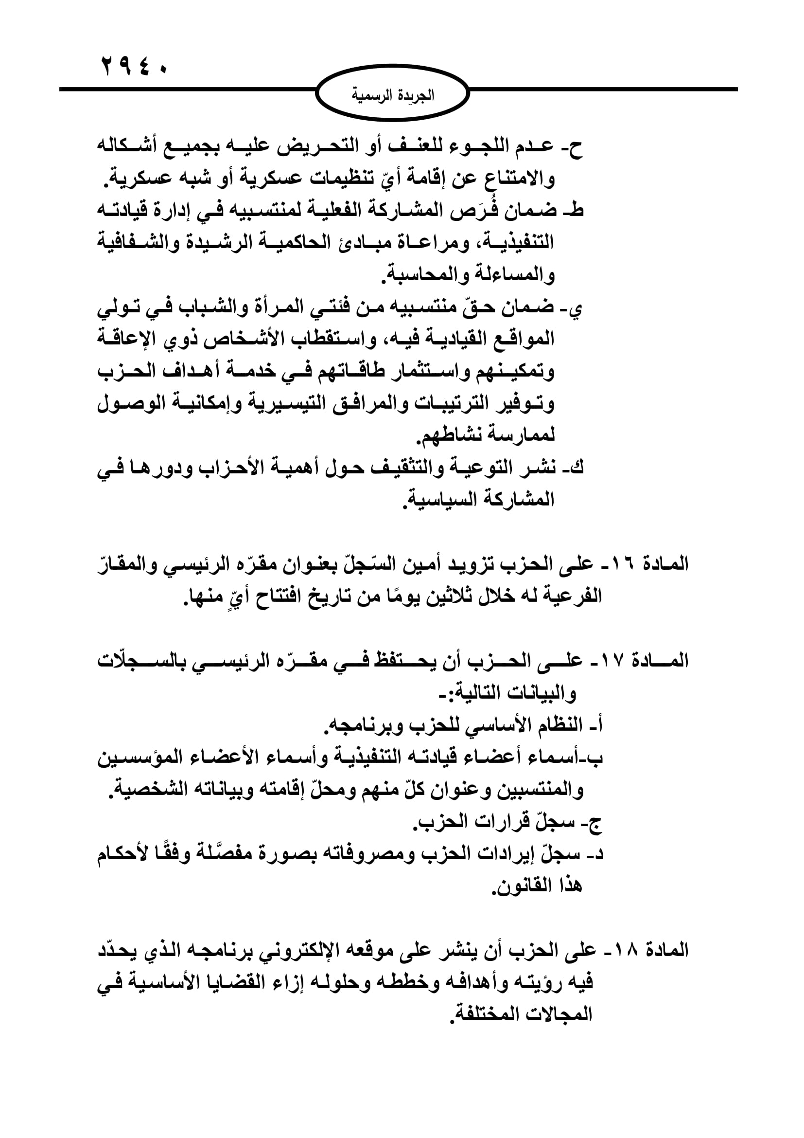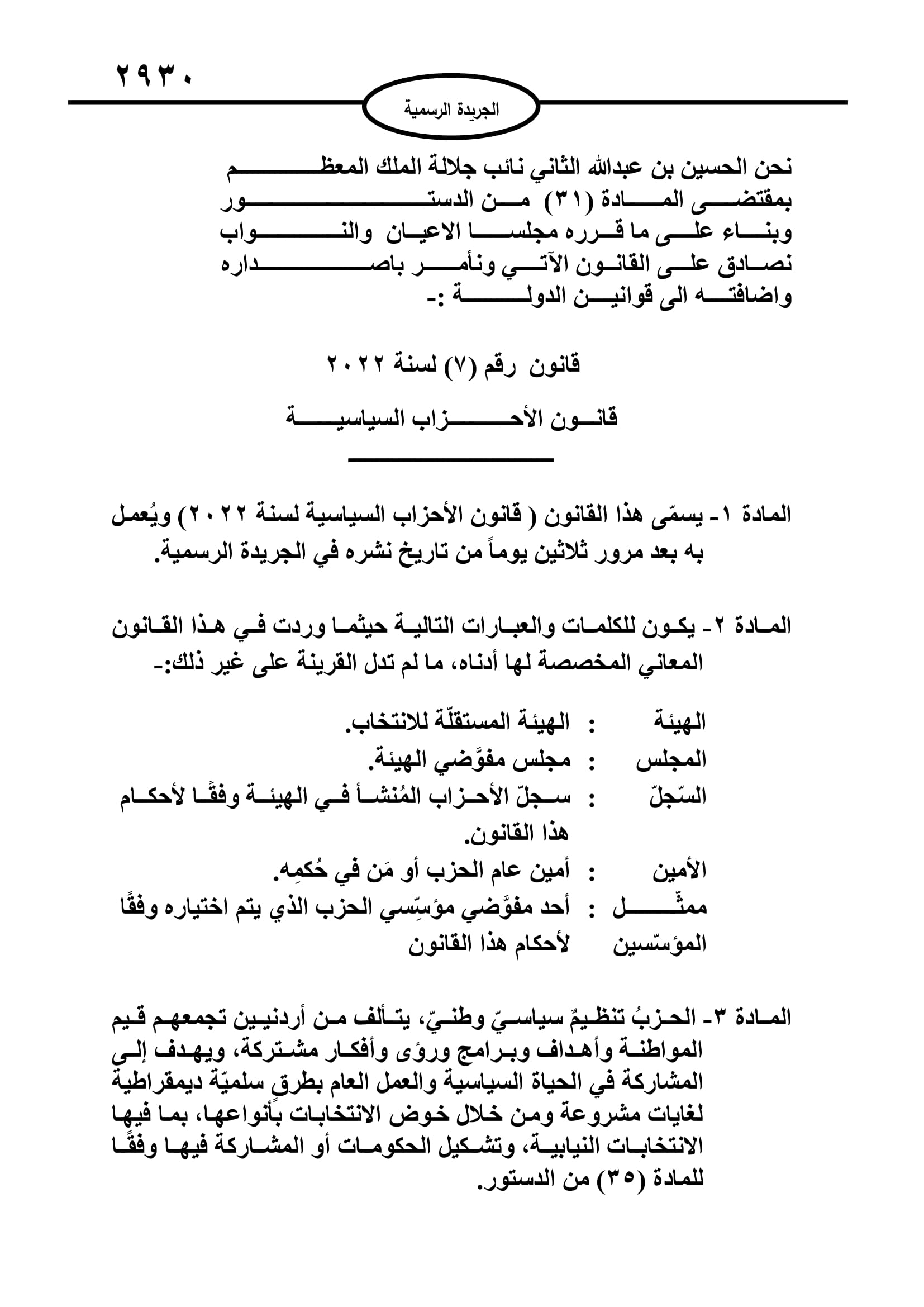 أخبار البلد ــ صدر في عدد الجريدة الرسمية اليوم الخميس قانون الاحزاب السياسية لسنة 2022.