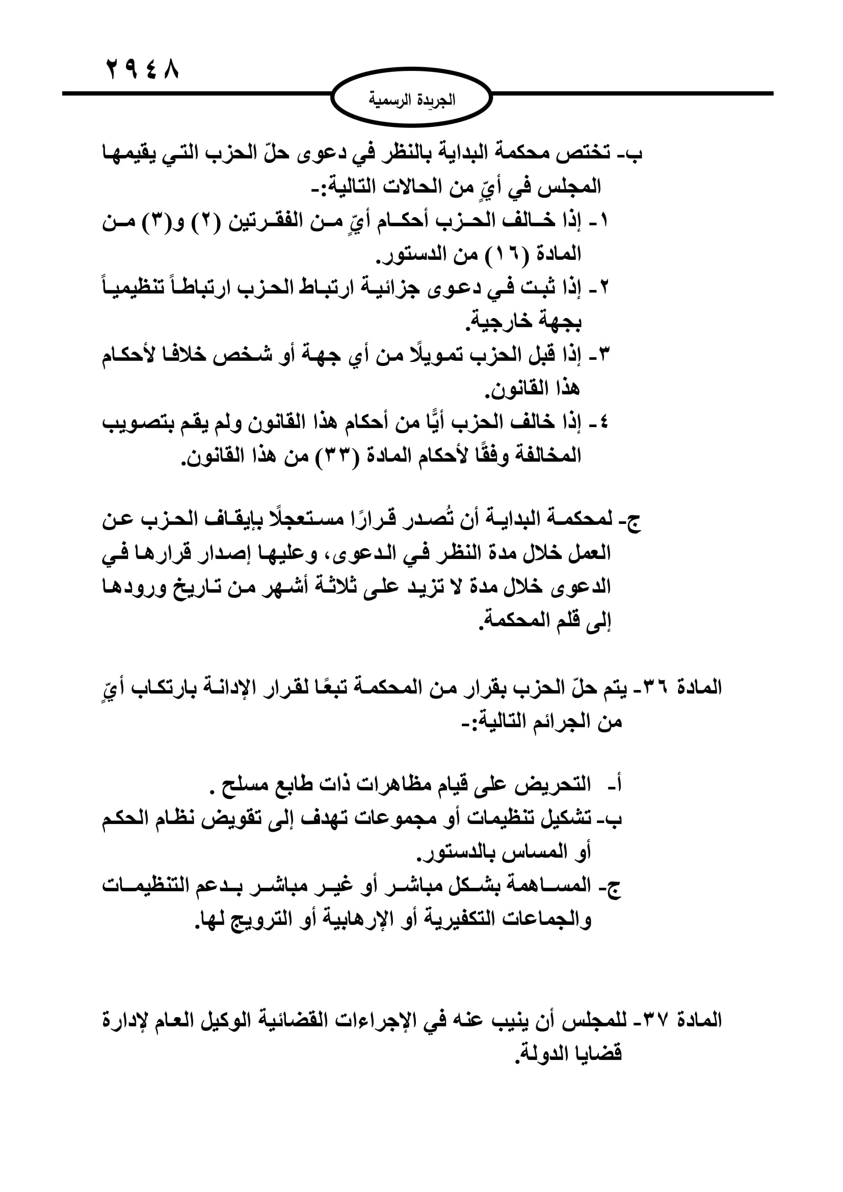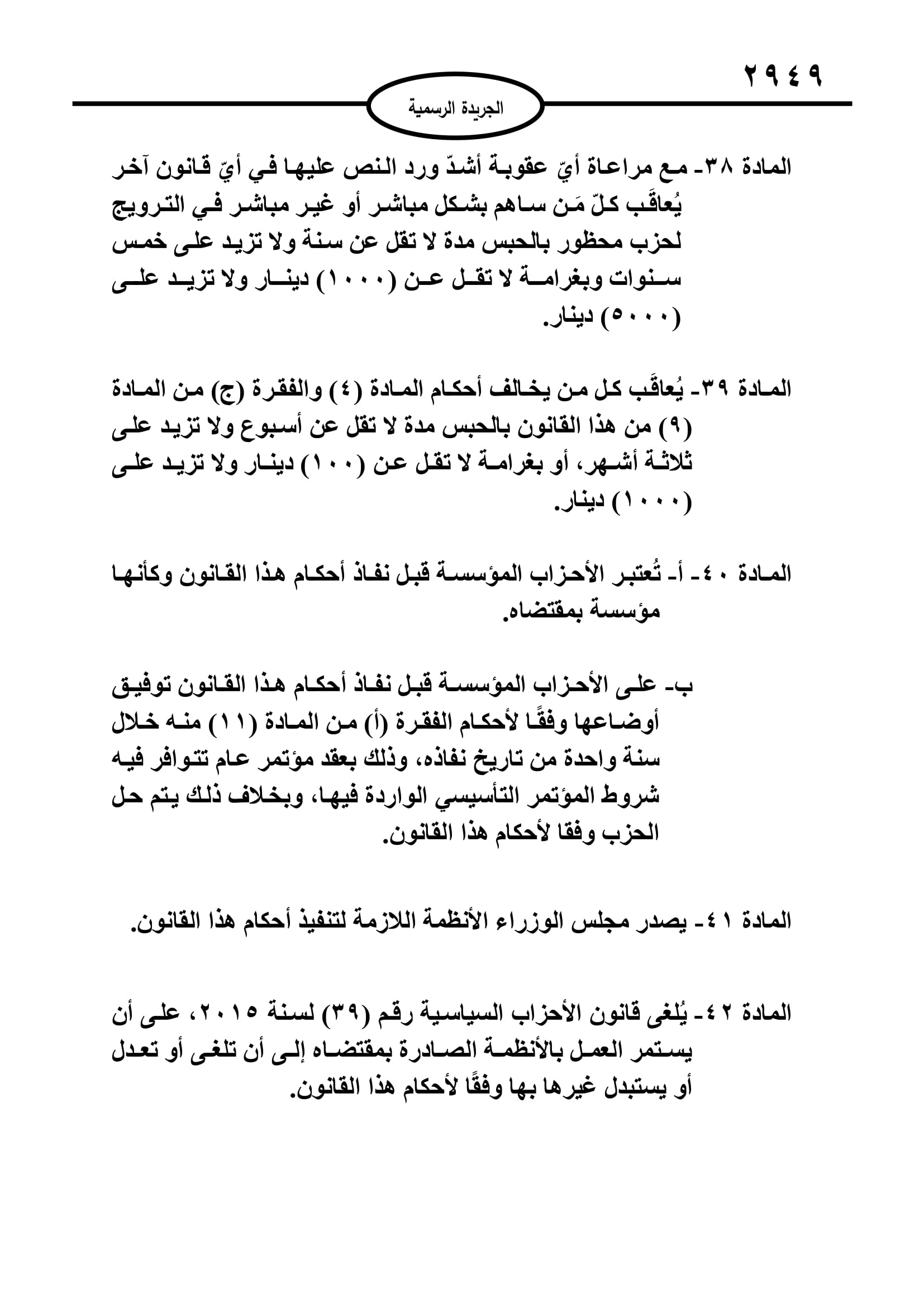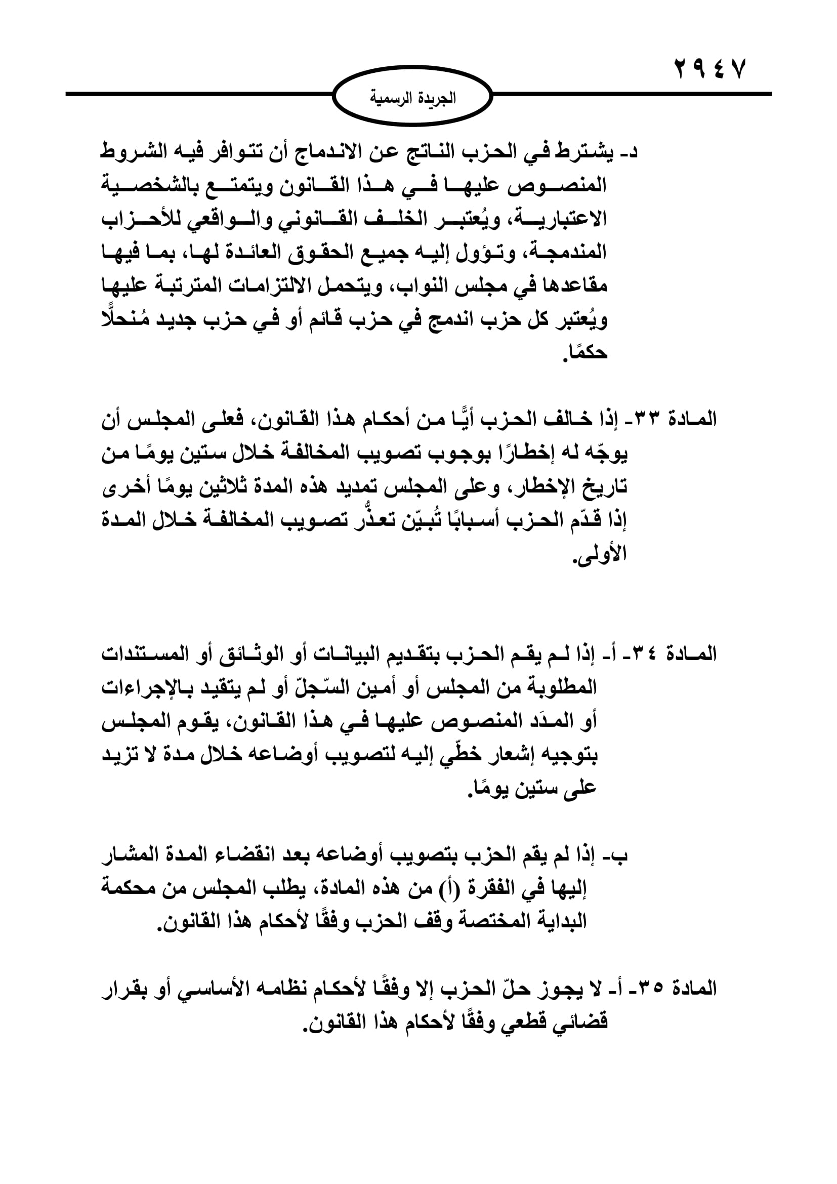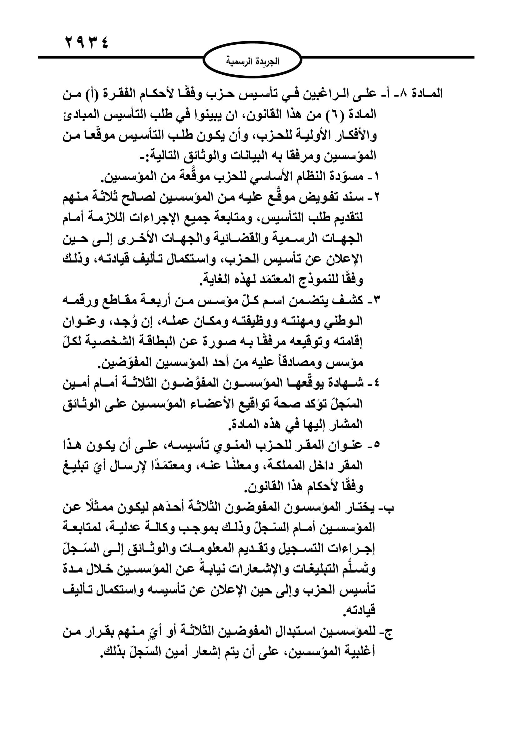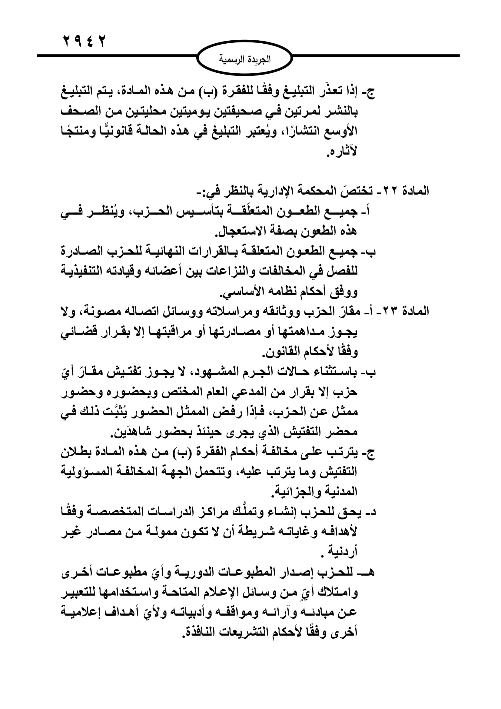 أخبار البلد ــ صدر في عدد الجريدة الرسمية اليوم الخميس قانون الاحزاب السياسية لسنة 2022.