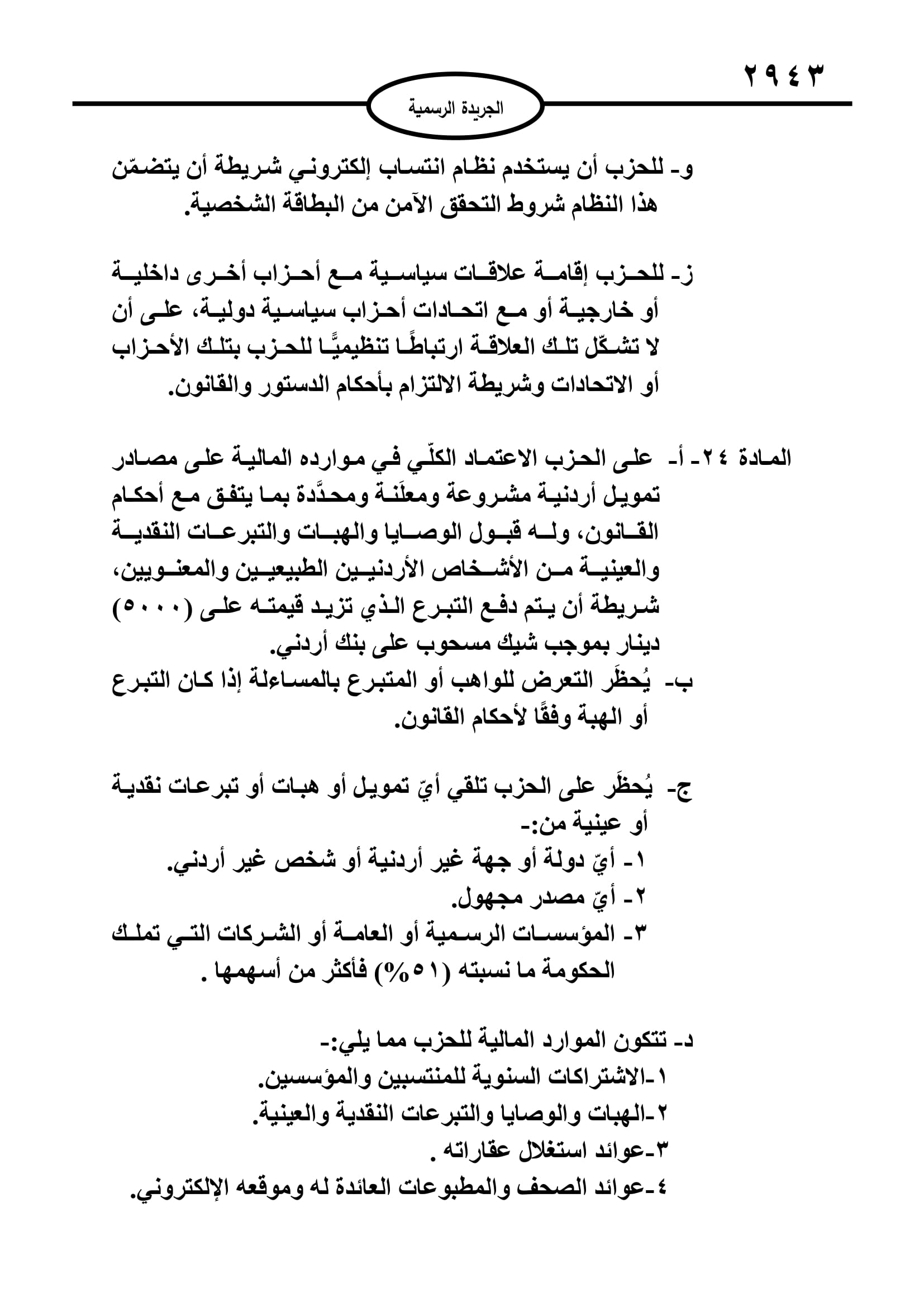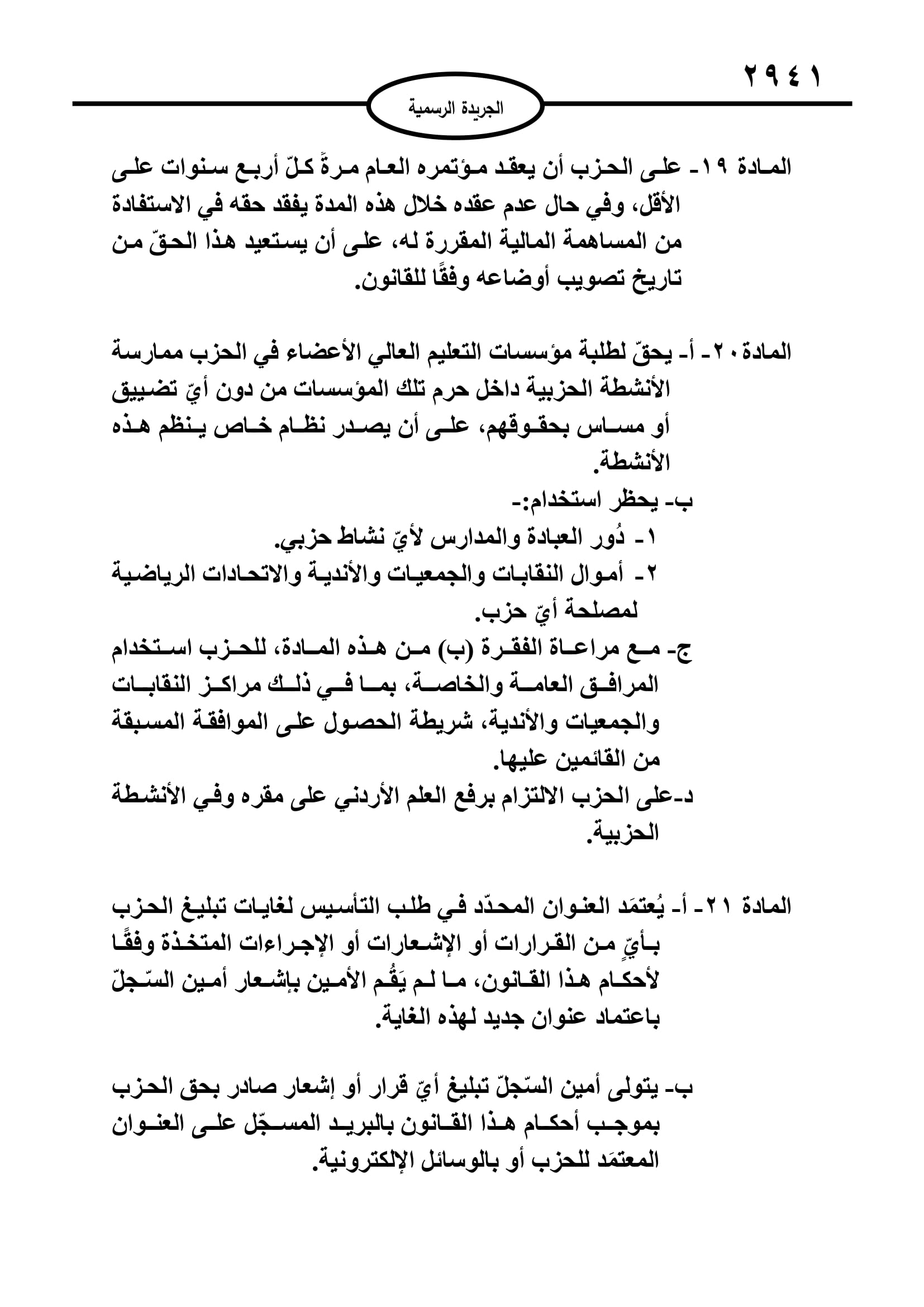 وكان أقر مجلسا الأعيان والنواب قانون الاحزاب السياسية بعد اجراء تعديلات عليه.