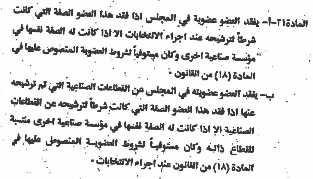 وبين بأنه توجه إلى ديوان التشريع ولوزارة الصناعة والتجارة للأخذ بالمشورة القانونية قبل أن يتخذ أي إجراء رسمي بشأن انسحابه من المؤسسة التي كان يمثلها حين تقدم للانتخابات ، وهم من أكدوا له بأن انسحابه من المؤسسة لن يؤثر على شرعية عضويته في الغرفة إن كان يشغل منصباً إدارياً في مؤسسة أخرى منتسبة للقطاع الصناعي .