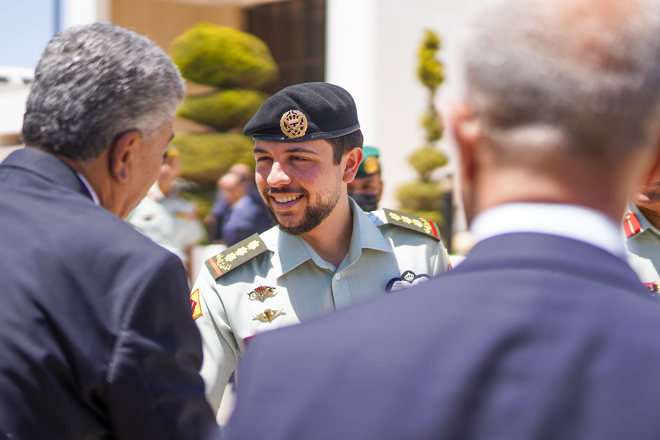 كما كان في الاستقبال سمو الأمير راشد بن الحسن، ومدير المخابرات العامة اللواء أحمد حسني، ومدير الأمن العام اللواء الركن حسين الحواتمة، وآمر الكلية.
