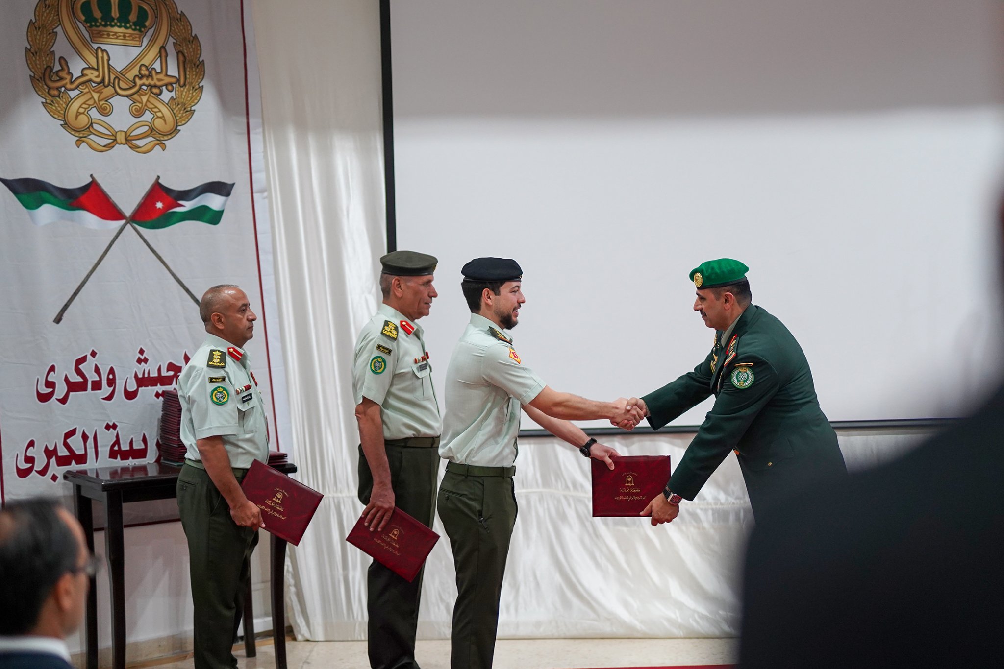 أخبار البلد ــ مندوبا عن جلالة الملك عبدالله الثاني، القائد الأعلى للقوات المسلحة، رعى سمو الأمير الحسين بن عبدالله الثاني ولي العهد في كلية الدفاع الوطني الملكية الأردنية، اليوم الاثنين، حفل تخريج دورة الدفاع الوطني 19، للحاصلين على ماجستير الإدارة والدراسات الاستراتيجية، وماجستير استراتيجيات مواجهة التطرف والإرهاب 5.