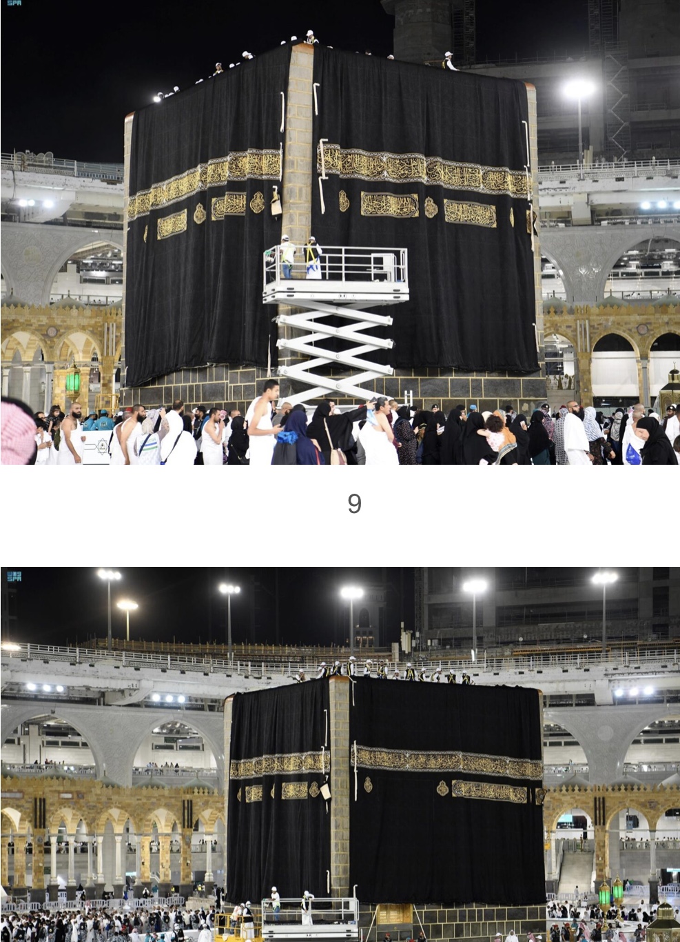 استبدلت الرئاسة العامة لشؤون المسجد الحرام والمسجد النبوي، اليوم السبت، كسوة الكعبة المشرفة كما جرت العادة السنوية، وذلك من خلال فريق عمل محدد من مجمع الملك عبدالعزيز لكسوة الكعبة المشرفة، حيث بدأ الفريق بتفكيك الكسوة القديمة وتركيب الجديدة، ثم تثبيتها في أركان الكعبة وسطحها.