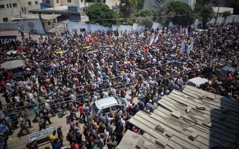 وانطلقت مراسم التشييع من مشفى الشهيد ابو يوسف النجار وصولا الى مسجد بدر وسط مدينة رفح وسط هتافات تدعو المقاومة للانتقام للشهداء.
