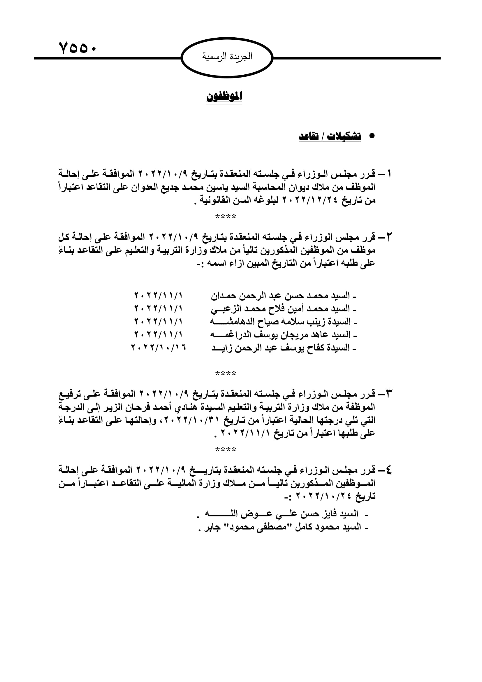 موظفون إلى التقاعد (اسماء)