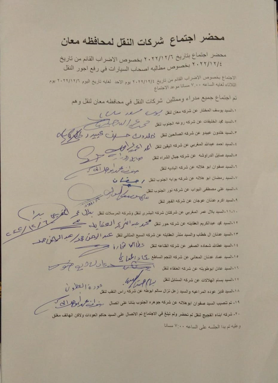 أخبار البلد - اجتمع مدراء وممثلي شركات النقل في محافظة معان مساء اليوم الثلاثاء ، لمناقشة إضراب السائقين ومطالبهم برفع أجور النقل .