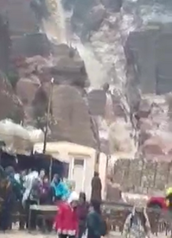 وشهدت المدينة الوردية تدفقا للمياه من الجبال المحيطة، اثر الامطار الغزيرة التي هطلت في جنوب المملكة.