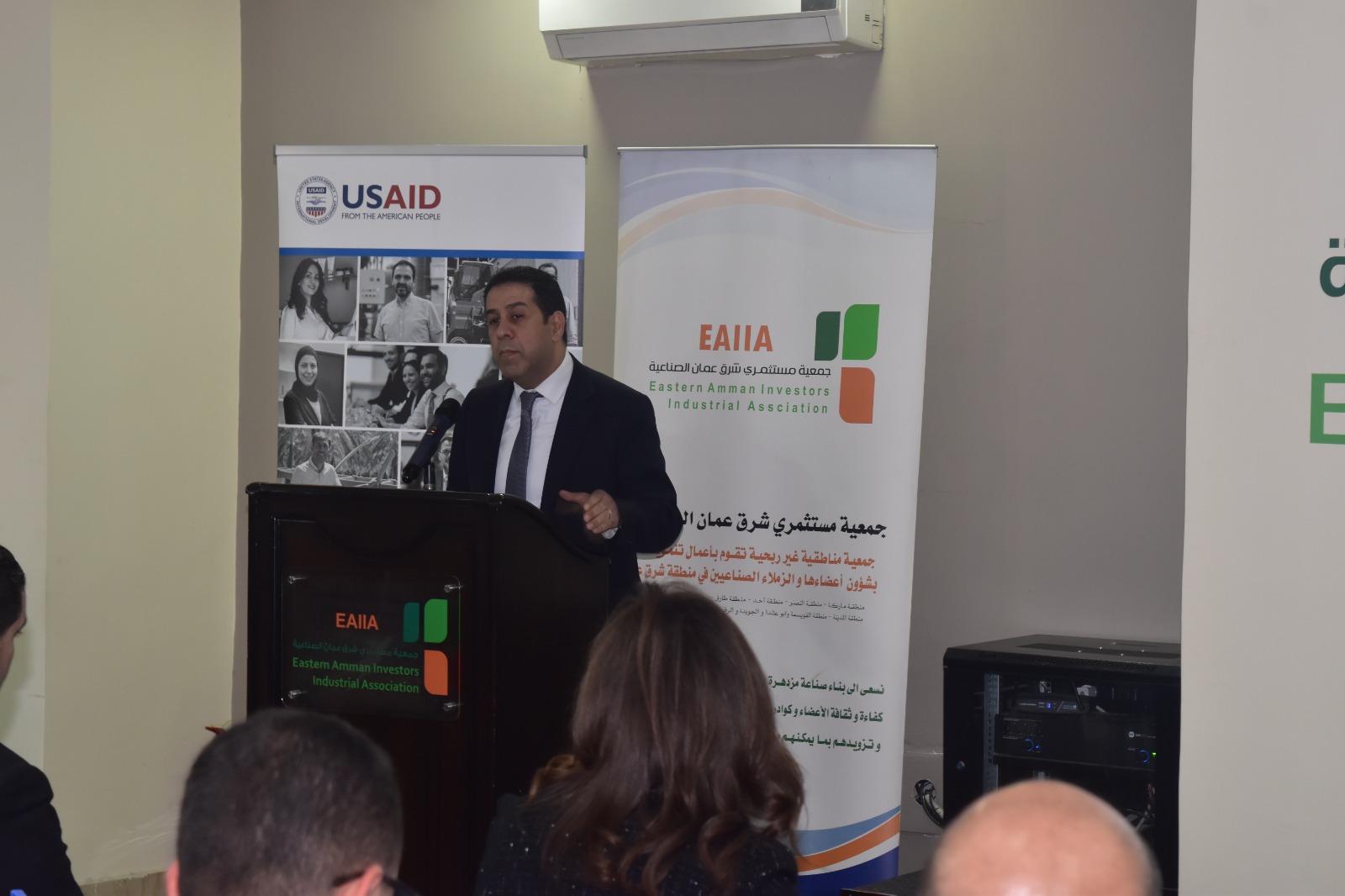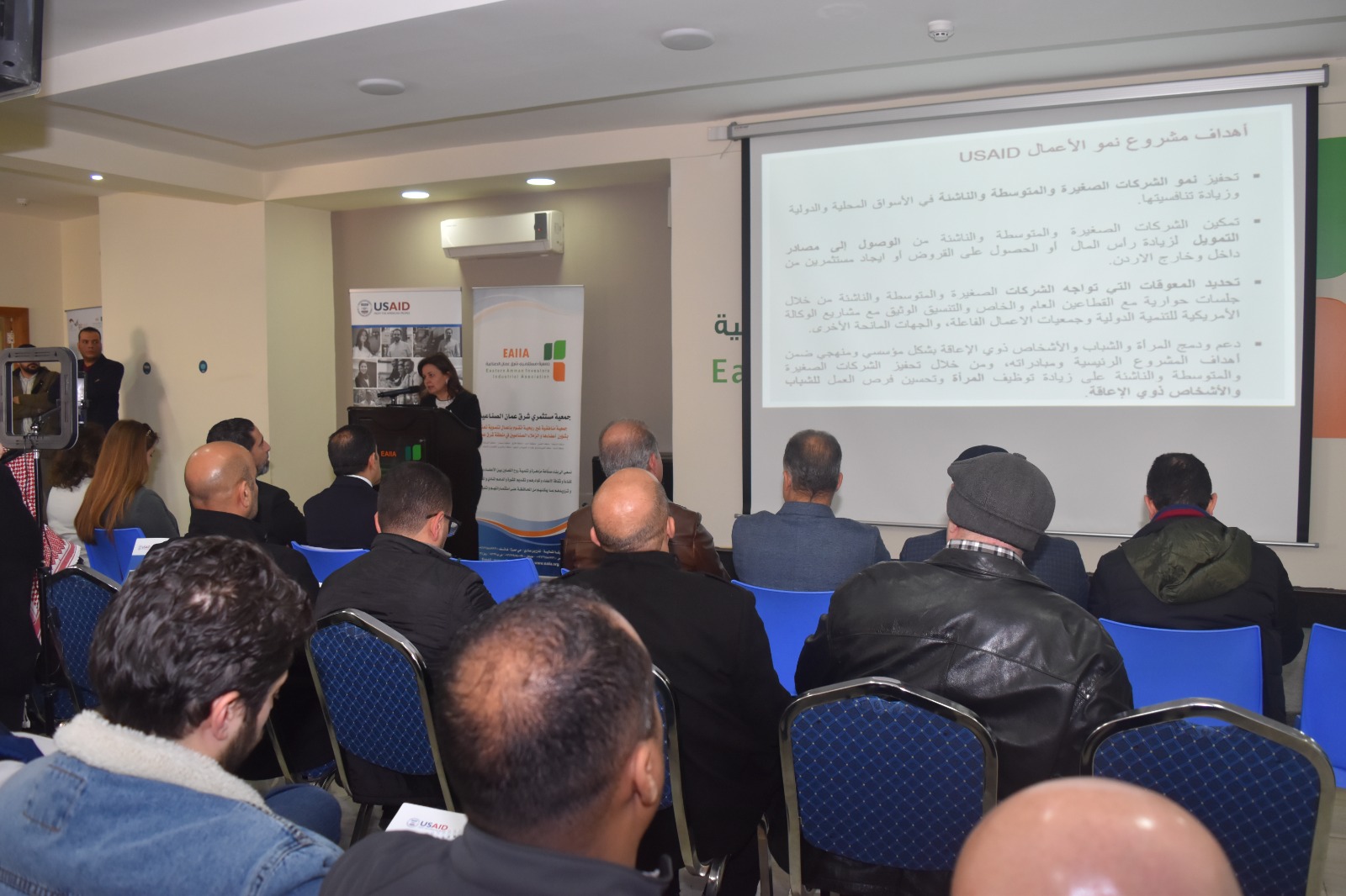وبدأ البرنامج التعريفي بكلمة ترحيبية من رئيس مجلس ادارة جمعية مستثمري شرق عمّان الصناعية الدكتور اياد ابو حلتم "اننا في القطاع الصناعي نواجه تحديات كبيرة وأبرزها محدودية الوصول الى التمويل وهنالك العديد من التحديات الاخرى ومن المهم جداً ان نتطلع على كيفية تطوير اعمالنا بأقل الكلف، لذلك يهمنا بأن يكون هنالك تعاون مع منظمات خارجية والحصول على منح ومساعدات مالية ومعرفية وهذا الذي نطمح ان نصل اليه من خلال مشروع نمو الاعمال USAID ."