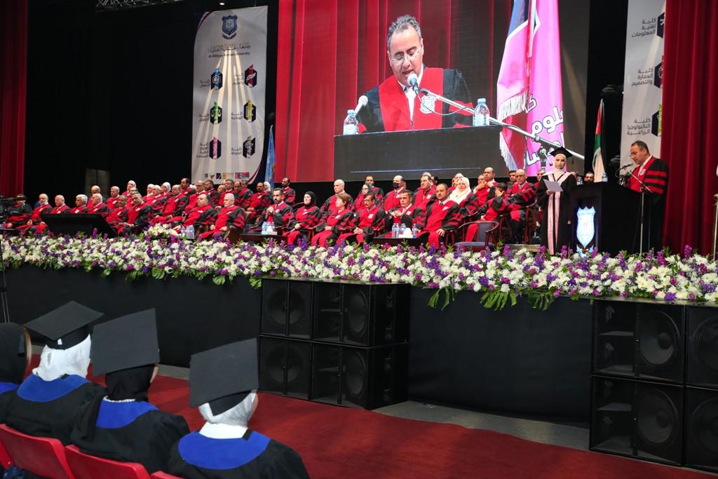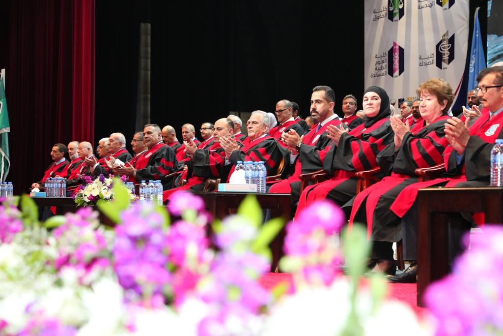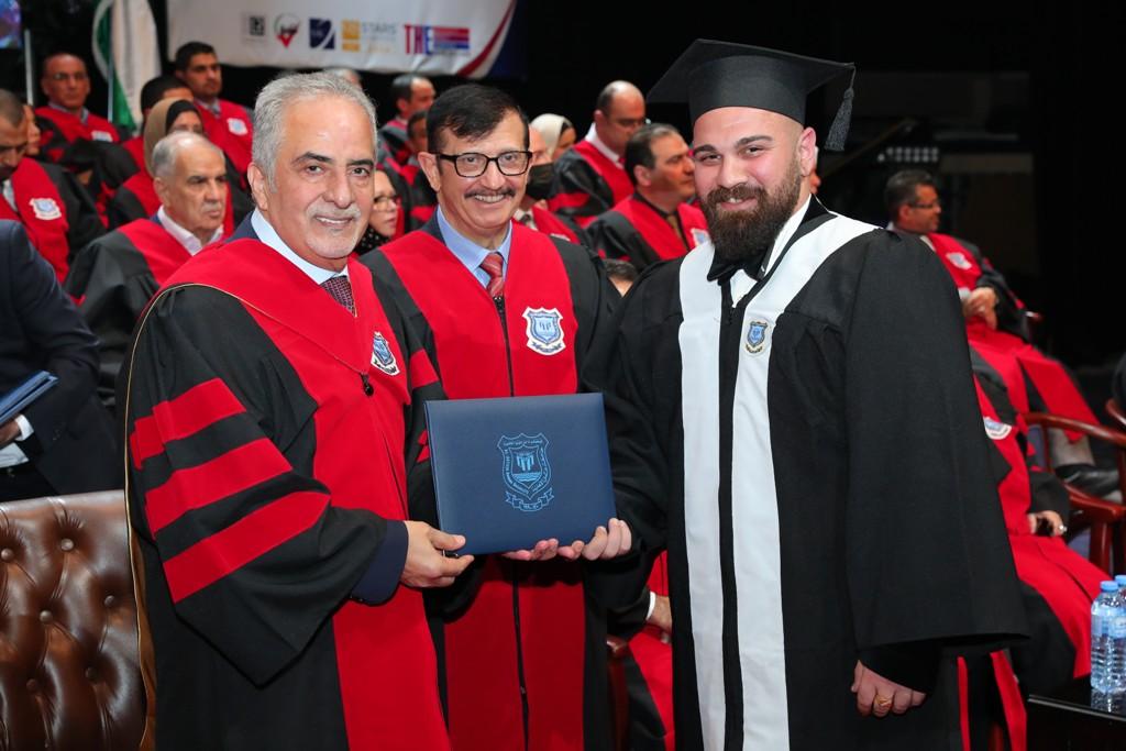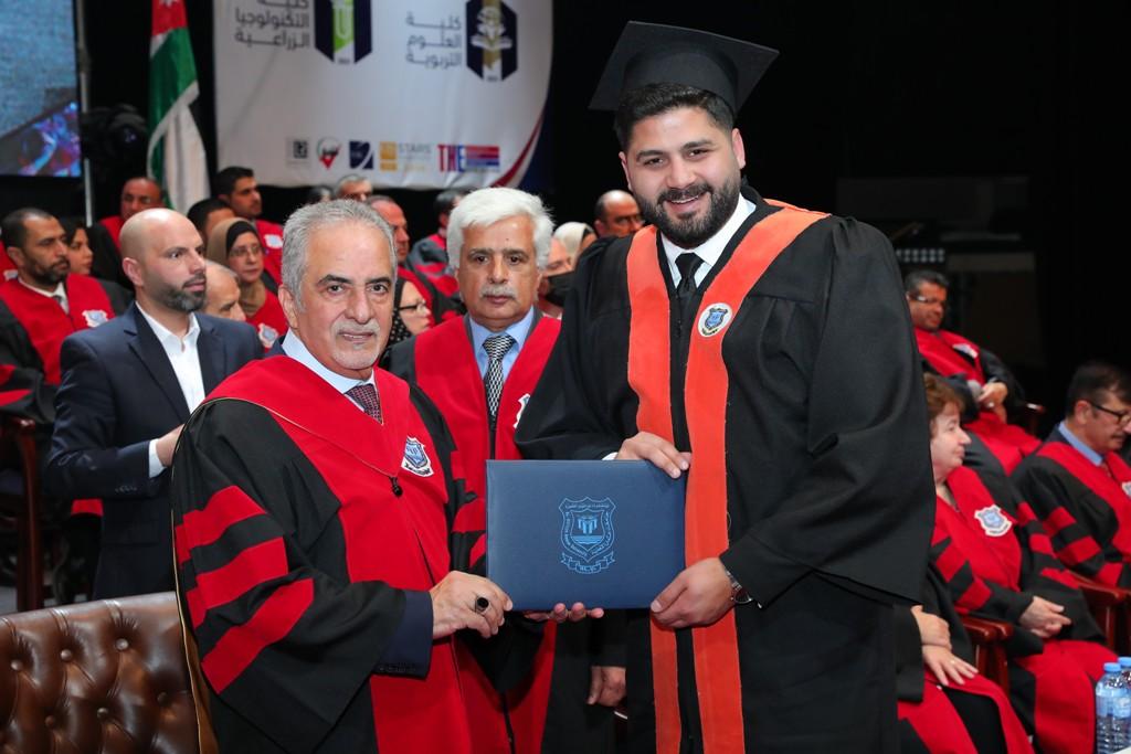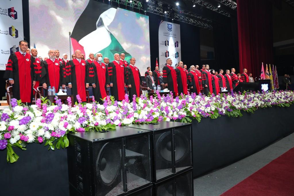 ">وكان الاستاذ الدكتور ساري حمدان رئيس الجامعة قد رعى حفل التخريج بحضورعدد من اعضاء مجلس الامناء ونائب رئيس هيئة المديرين الاستاذ عمر الحوراني وأعضاء الهيئة والعمداء واعضاء الهيئتين التدريسية والادارية والمدعوين .