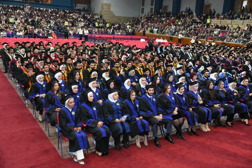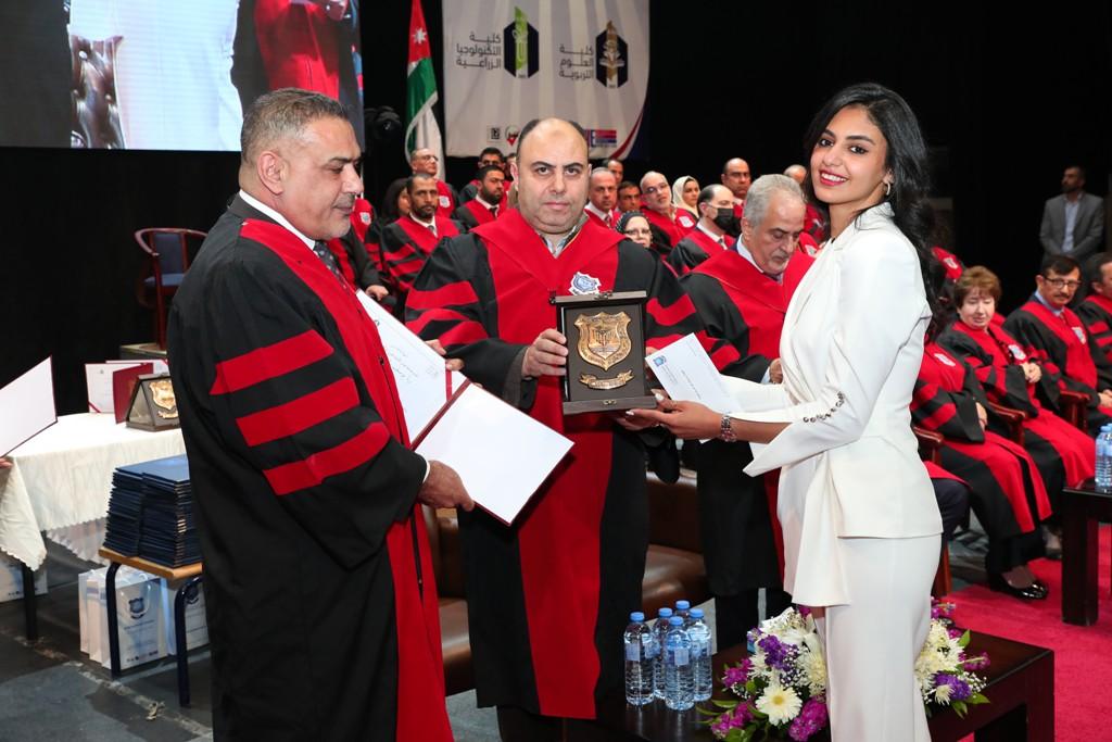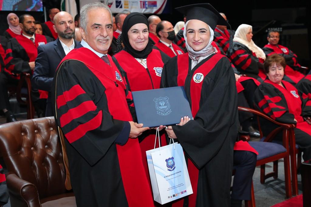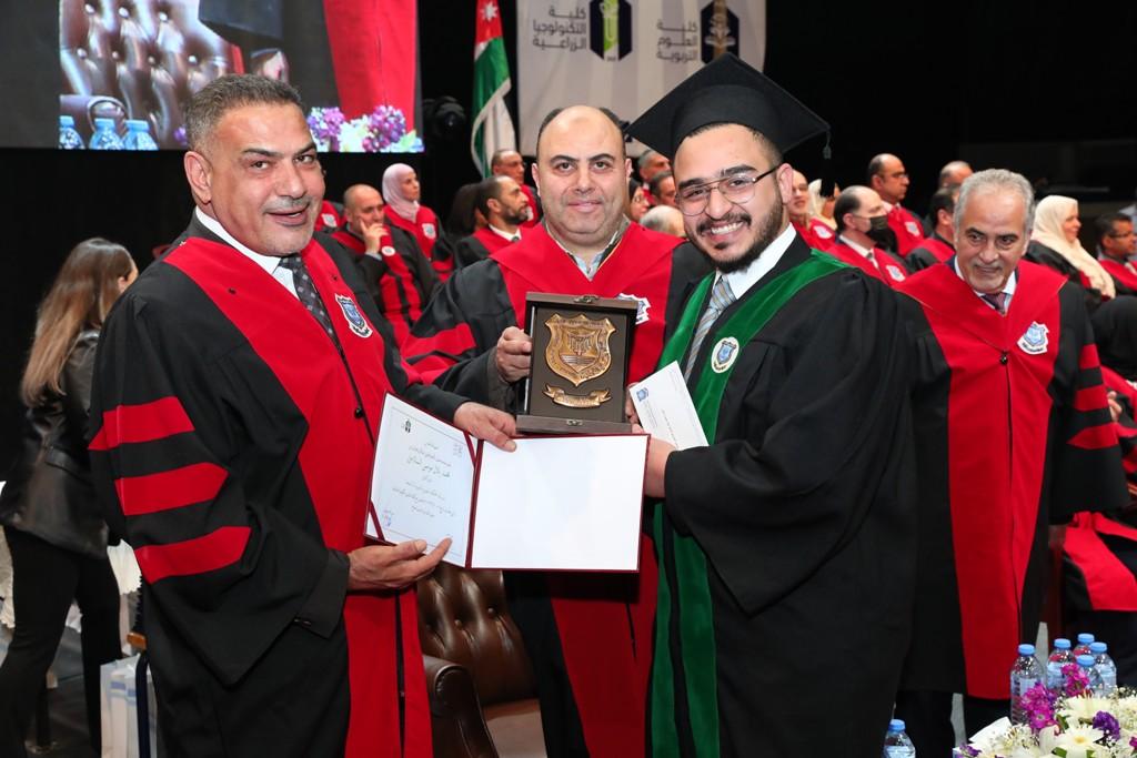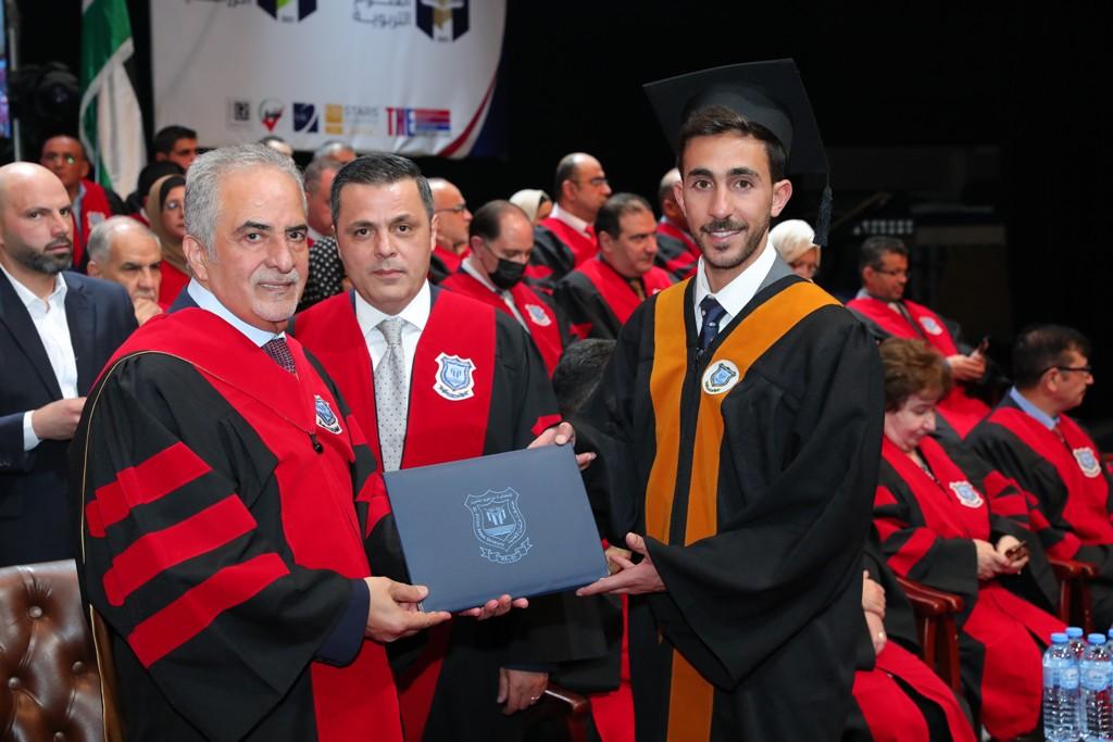 ">وكان الاستاذ الدكتور ساري حمدان رئيس الجامعة قد رعى حفل التخريج بحضورعدد من اعضاء مجلس الامناء ونائب رئيس هيئة المديرين الاستاذ عمر الحوراني وأعضاء الهيئة والعمداء واعضاء الهيئتين التدريسية والادارية والمدعوين .