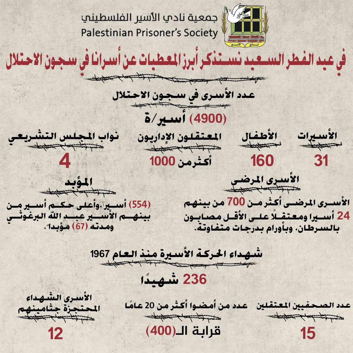 واستعرض نادي الأسير في بيان صدر عنه، الجمعة، لمناسبة عيد الفطر، أبرز المعطيات عن الأسرى، الذين يحرمهم الاحتلال على مدار سنوات وعقود من وجودهم إلى جانب عائلاتهم وأبنائهم.