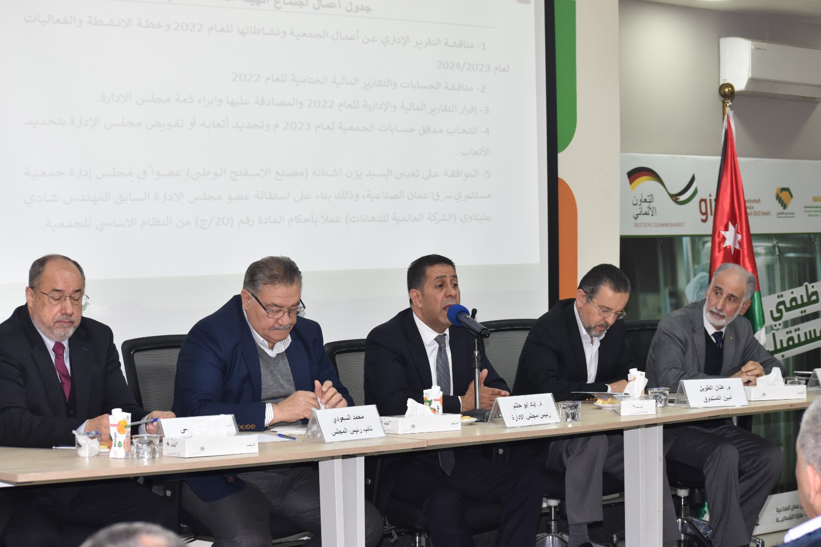 عقدت جمعية مستثمري شرق عمّان الصناعية لقاء معايدة بمناسبة عيد الفطر السعيد وتلاه اجتماع الهيئة العامة العادي الثاني عشر لعام 2022 اليوم السبت الموافق 29/4/2023 في مقر الجمعية الكائنة في ماركا، وافتتحت الجلسة بكلمة ترحيبية من رئيس مجلس الإدارة الدكتور إياد أبو حلتم بالسادة الصناعيين الكرام وبضيوف الجمعية سعادة النائب المهندس سليمان أبو يحيى، و عطوفة مساعد متصرف لواء ماركا السيد حامد الفرعين والشركة الوطنية للتشغيل والتدريب والوفد الخاص من القيادة العامة للقوات المسلحة - المختبرات العسكرية والزملاء الإعلاميين.