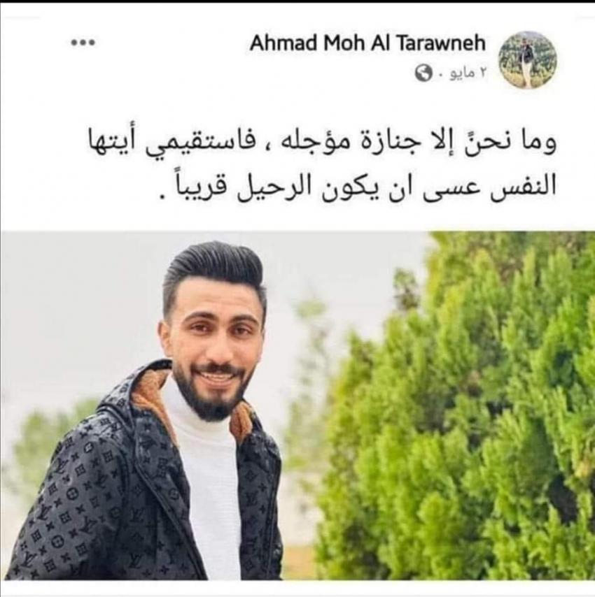 وقال الشاب العشريني أحمد محمد الطراونة في منشوره عبر صفحته: "وما نحن الّا جنازات مؤجلة، فاستقيمي أيتها النفس عسى ان يكون الرحيل قريباً".