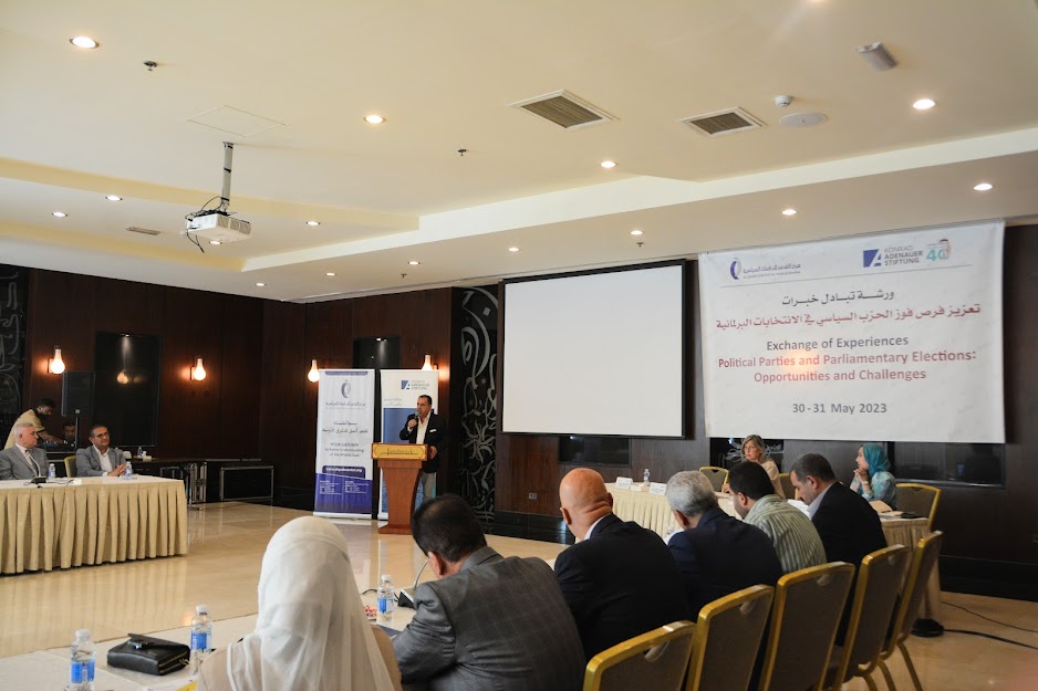 أخبار البلد- نظم مركز القدس للدراسات السياسية ومؤسسة كونراد أديناور وبالتعاون مع الهيئة المستقلة للانتخابات، نهاية الأسبوع الفائت، ورشة "تبادل خبرات" بعنوان "تعزيز فرص الأحزاب السياسية في الانتخابات العامة"، شارك فيها قرابة 70 مشاركاً ومشاركة من الأمناء العامين وقادة الصف الأول في أكثر من عشرين حزباً مسجلاً بموجب قانون الأحزاب السياسية الجديد وخبراء من المغرب ولبنان.