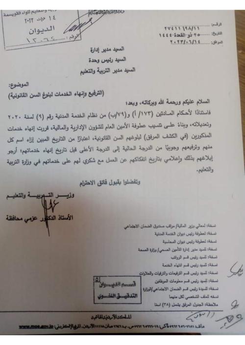 هذا وسيتم ترفيعهم وجوبيًا من الدرجة الحالية إلى الدرجة الأعلى قبل تاريخ إنهاء خدماتهم.