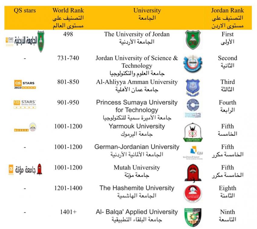 أخبار البلد - حصلت الجامعة الأردنية على المرتبة الأولى في تصنيف كيو أس العالمي (QS 2024 ) على مستوى المملكة الأردنية الهاشمية وفي الترتيب 498 عالميًا ضمن أفضل 500 جامعة على مستوى العالم.