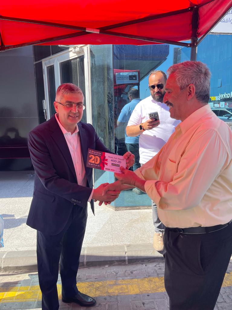 تسليم مجموعة من الرابحين بالسحب الرابع ضمن احتفالات المناصير للزيوت والمحروقات بمناسبة مرور 20 عام على تأسيسها .. 20 رابح و 8000 دينار شهرياً ضمن حملة 20 عام من العطاء وذلك خلال البث المباشر على مواقع التواصل الاجتماعي لشركة المناصير للزيوت والمحروقات ع الهوا مع راديو نشامى بتقديم الاعلامي هيثم الوكيل وبرنامج دق سلف برعاية المناصير للزيوت والمحروقات وحضور ممثلين من الشركات عدد من الرابحين والجمهور .