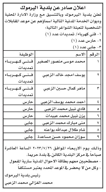 مدعوون لإجراء مقابلات شخصية واستكمال إجراءات التعيين (أسماء)
