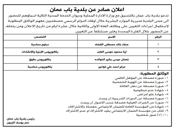 أخبار البلد - أخبار البلد- دعت عدداً من الوزارات والمؤسسات الرسمية والبلديات بالتنسيق مع ديوان الخدمة المدنية اليوم الخميس، مرشحين لإجراء المقابلات الشخصية واستكمال إجراءات التعيين