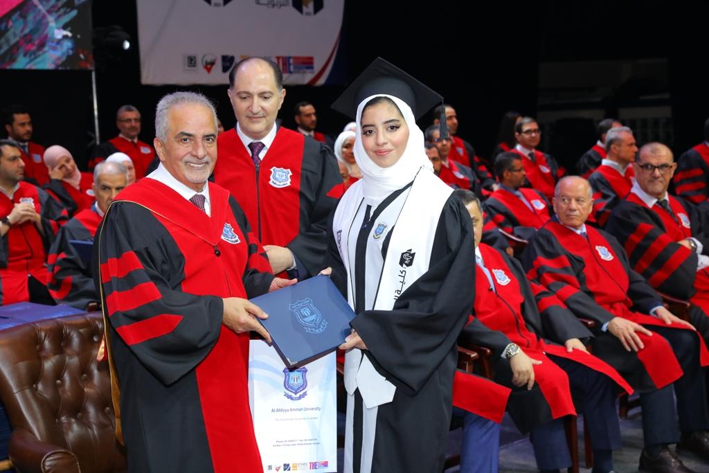 يسرني، بداية، أن أرحب بكم أجمل ترحيب في رحاب جامعة عمان الأهلية التي تحتفل بتخريج فوج جديد من طلبتها، حيث تواصل الجامعة بوصفها صرحاً حضارياً متميزاً العمل على اعداد العمل الطالب الجامعي إعدادا علمياً وثقافياً واجتماعياً وتهيئة الفرصة للتسابق في ميدان العطاء وتحقيق الذات من خلال برامجها الاكاديمية والتي تميزت بالسبق والريادة بين الجامعات الأردنية منذ تأسيسها كأول جامعة خاصة في الاردن منذ ما يزيد على ثلاث وثلاثين عاماً على يد المرحوم المؤسس الدكتور احمد الحوراني لتكون منارة علم ومركز اشعاع حضاري فكانت وستبقى هذه الجامعة جامعة الوطن وجامعة العلم والمعرفة والتميز.